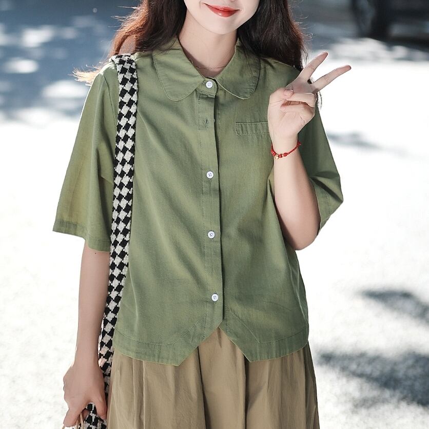 トップス シャツ 半袖 襟付き 前開き ボタン ショート丈 可愛い かわいい 大人可愛い きれいめ シンプル 上品 レトロ おしゃれ かっこいい カジュアル こなれ感 個性的 主役級 存在感 抜け感 春 夏 ベーシック ナチュラル フェミニン 清楚 無地 女性用 レディース ママ OL 通勤 オフィス 学生 通学 デート お出かけ お泊まり 女子会 旅行 リゾート 休日 カフェ ショッピング コンパ イベント 普段使い デイリー MTG 会議 プレゼン 着回し 重ね着 M L XL トレンド モテ | SPARKJOY レディースファッション