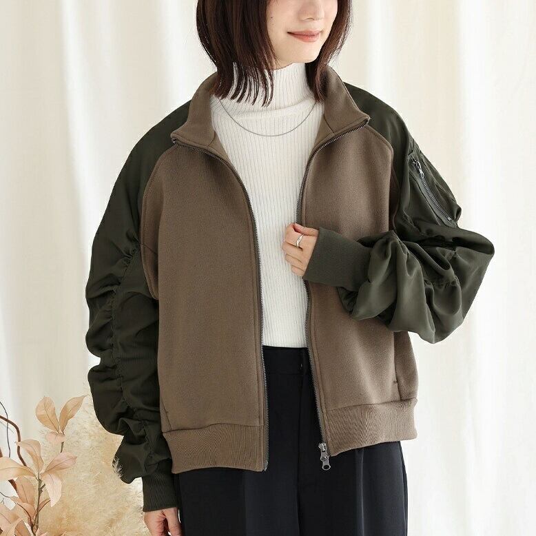 前開きのジップアップデザインとショート丈が、こなれ感を演出します。