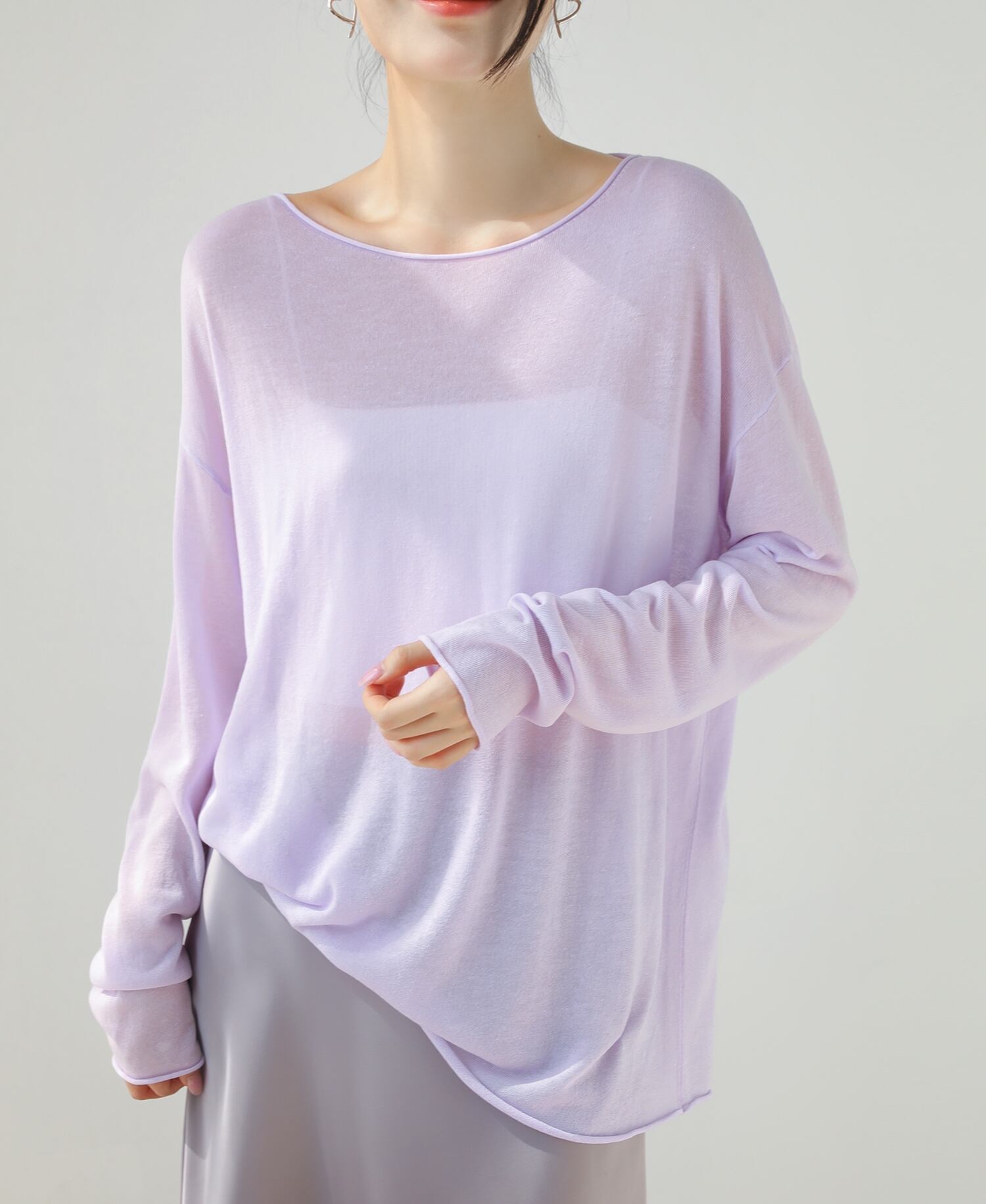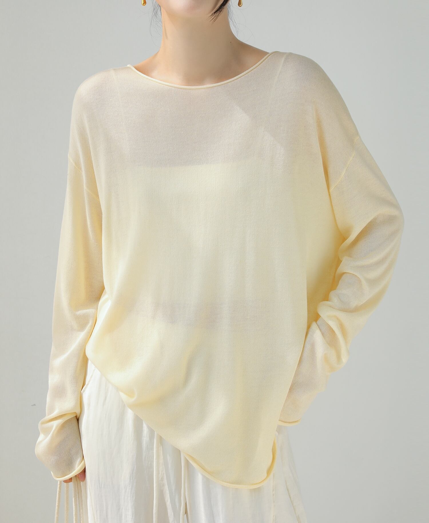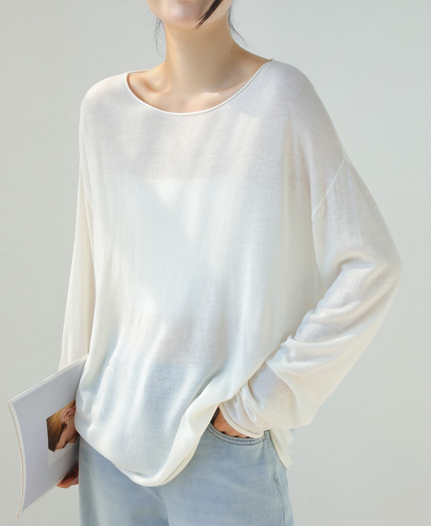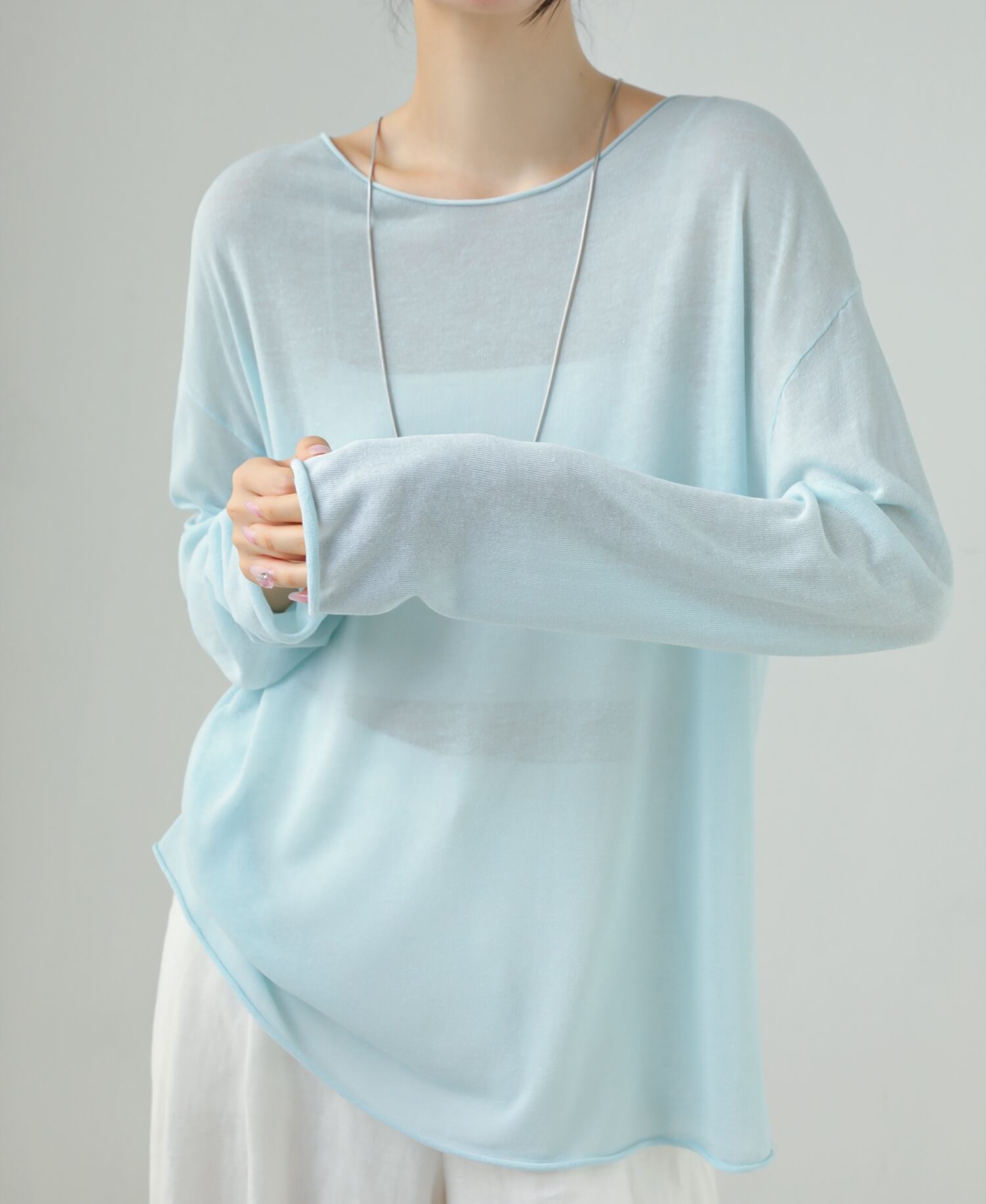 トップス カットソー 長袖 ボートネック プルオーバー ミディアム丈 透け感 可愛い かわいい 大人可愛い きれいめ シンプル 上品 レトロ おしゃれ かっこいい カジュアル こなれ感 個性的 主役級 存在感 抜け感 春 夏 ベーシック ナチュラル クール 無地 女性用 レディース ママ OL 通勤 オフィス 学生 通学 デート お出かけ お泊まり 女子会 旅行 リゾート 休日 アウトドア カフェ ショッピング コンパ イベント 普段使い デイリー 着回し 重ね着 M L トレンド 日焼け防止 モテ | SPARKJOY レディースファッション