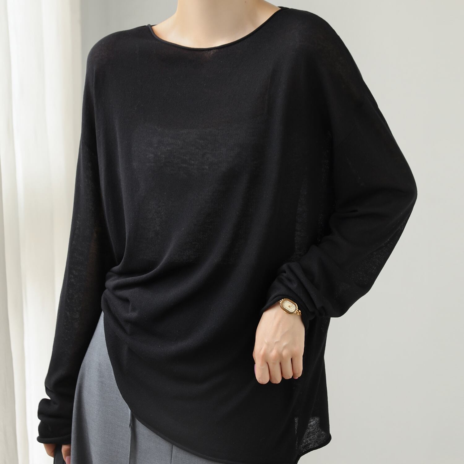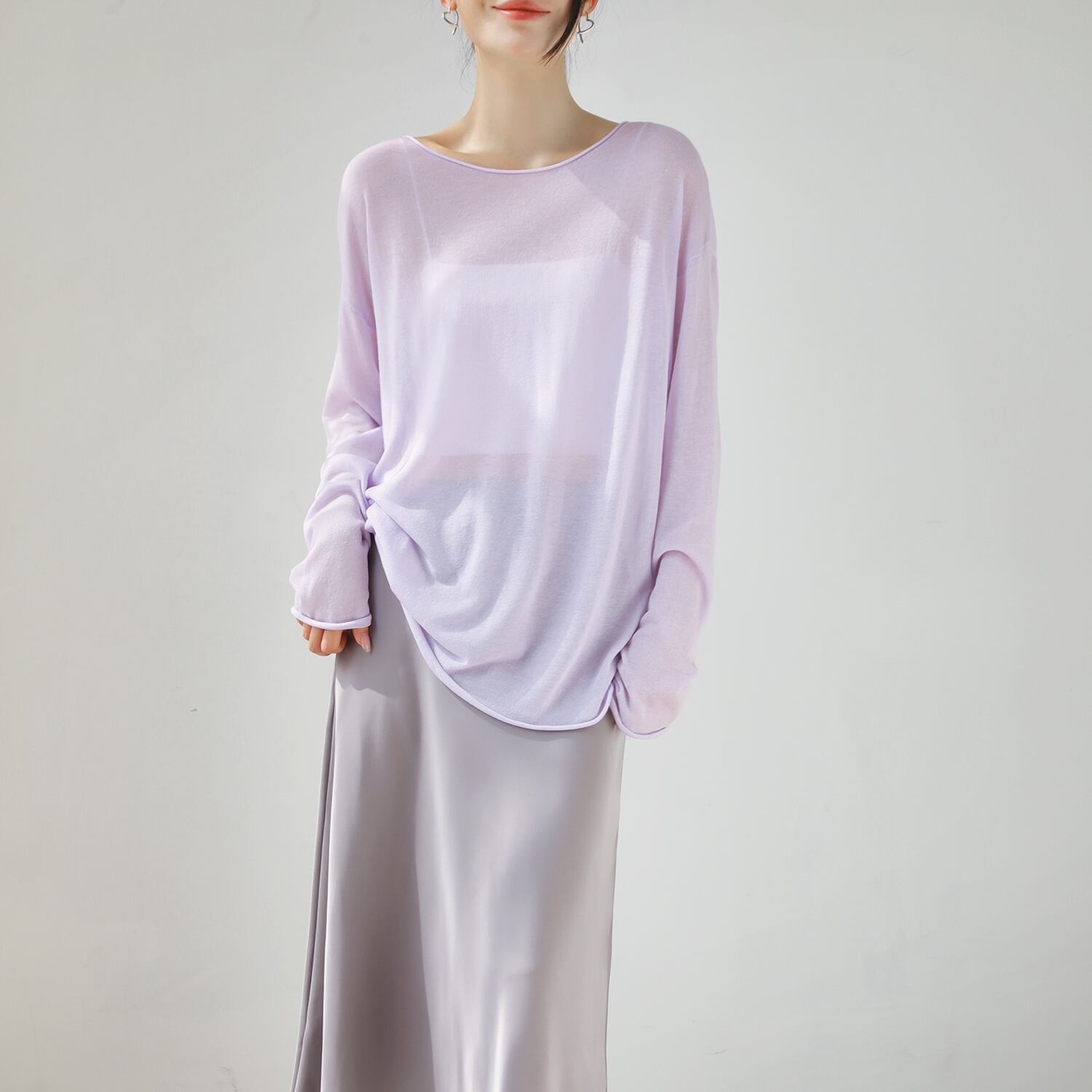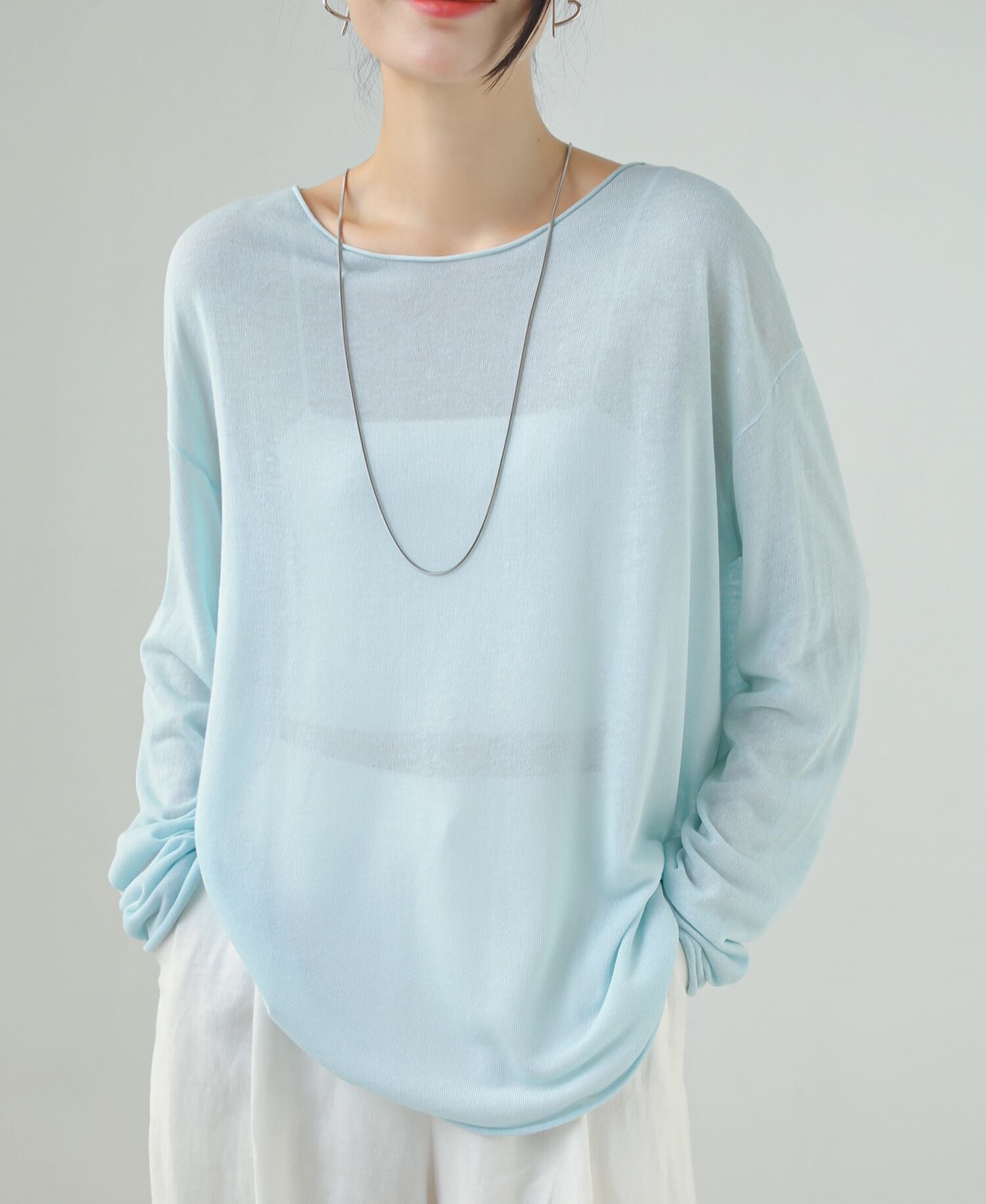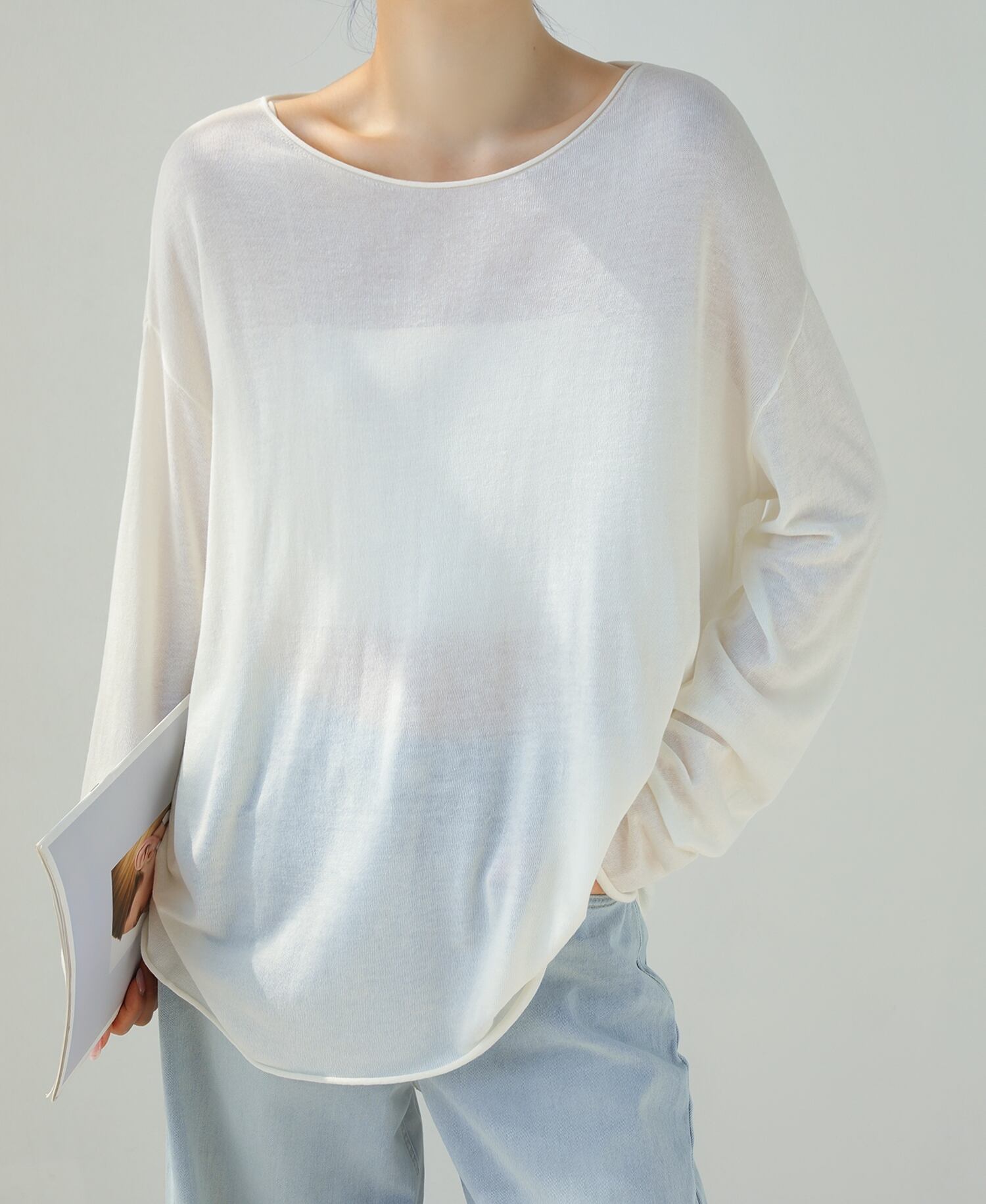 トップス カットソー 長袖 ボートネック プルオーバー ミディアム丈 透け感 可愛い かわいい 大人可愛い きれいめ シンプル 上品 レトロ おしゃれ かっこいい カジュアル こなれ感 個性的 主役級 存在感 抜け感 春 夏 ベーシック ナチュラル クール 無地 女性用 レディース ママ OL 通勤 オフィス 学生 通学 デート お出かけ お泊まり 女子会 旅行 リゾート 休日 アウトドア カフェ ショッピング コンパ イベント 普段使い デイリー 着回し 重ね着 M L トレンド 日焼け防止 モテ | SPARKJOY レディースファッション