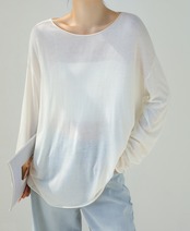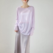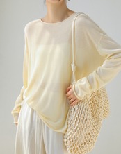 ボートネックデザインが女性らしさを引き立て、さりげない透け感が魅力の一着。