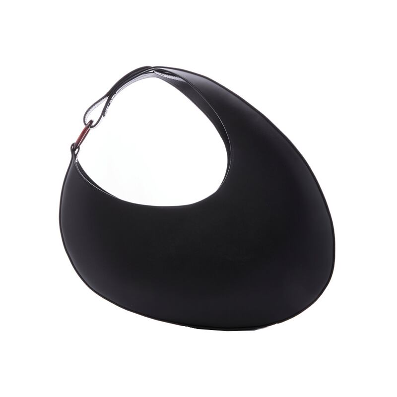 このバッグは、シンプルでありながら存在感を放つ三日月型デザインのハンドバッグです。