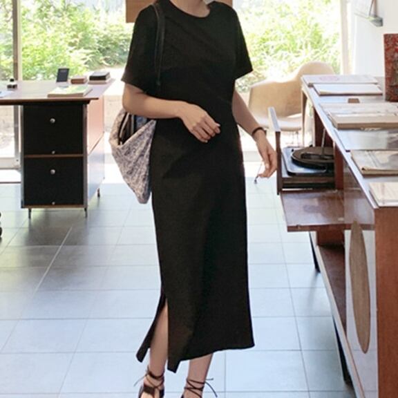 ワンピース ミモレ丈ワンピース Tシャツワンピース 半袖 ラウンドネック サイドスリット ウエストマーク かわいい 大人可愛い きれいめ シンプル 上品 おしゃれ カジュアル こなれ感 個性的 主役級 存在感 抜け感 春 夏 ベーシック ナチュラル キュート フェミニン 無地 女性用 レディース ママ OL 通勤 オフィス 学生 通学 デート お出かけ お泊まり 女子会 旅行 休日 カフェ ショッピング コンパ イベント 普段使い デイリー 着回し 重ね着 脚長 美脚 S M L XL トレンド モテ | SPARKJOY レディースファッション
