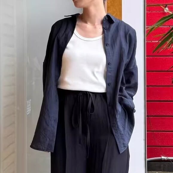シンプルでありながら大人可愛い魅力を引き立てる、長袖襟付きシャツです。