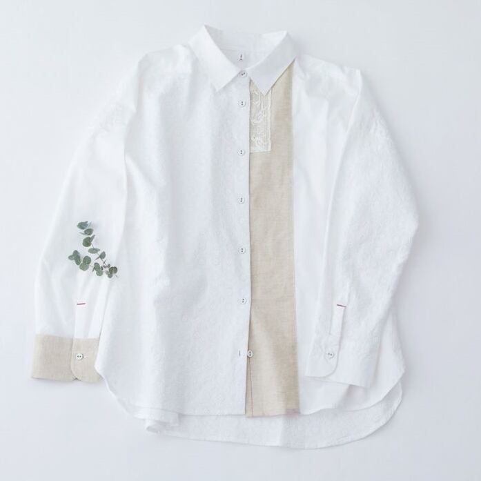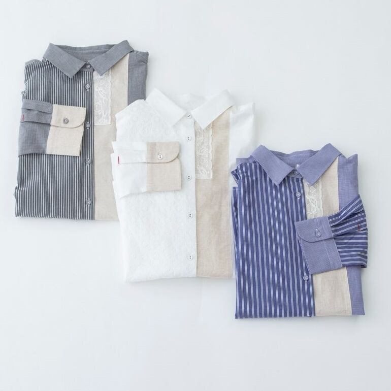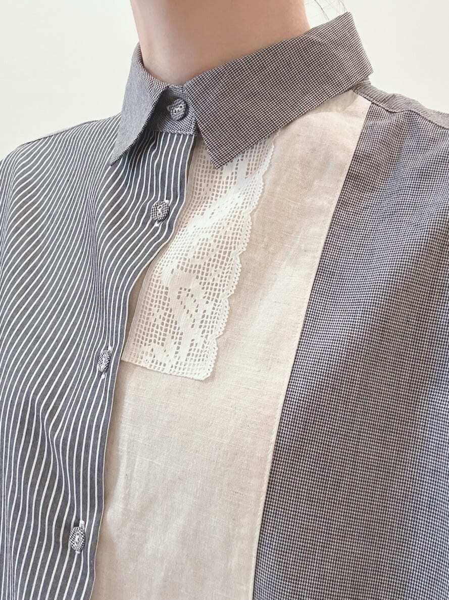 トップス シャツ 長袖 襟付き 前開き ボタン ミディアム丈 レース パッチワーク風 可愛い かわいい 大人可愛い きれいめ シンプル 上品 レトロ おしゃれ かっこいい カジュアル こなれ感 個性的 主役級 存在感 抜け感 春 夏 ベーシック ナチュラル ガーリー 清楚 女性用 レディース ママ OL 通勤 オフィス 学生 通学 デート お出かけ お泊まり 女子会 旅行 リゾート 休日 アウトドア カフェ ショッピング コンパ イベント 普段使い デイリー 着回し 重ね着 ワンサイズ トレンド モテ | SPARKJOY レディースファッション