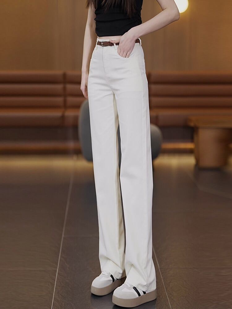 レディース パンツ ボトムス ストレートパンツ 丈長 フルレングス スリム 細身 ストレート ベルト ファスナー ポケット ハイウエスト きれいめ シンプル カジュアル 上品 おしゃれ かっこいい こなれ感 ラフ ナチュラル 無地 春 夏 秋 冬 オールシーズン ロングシーズン シーズンレス OL 通勤 学生 学校 通学 デート お出かけ 休日 カフェ 美脚 脚長 普段使い 着回し 清楚 S M L XL 2XL 3XL 大きいサイズ 白 ホワイト カーキ | SPARKJOY レディースファッション