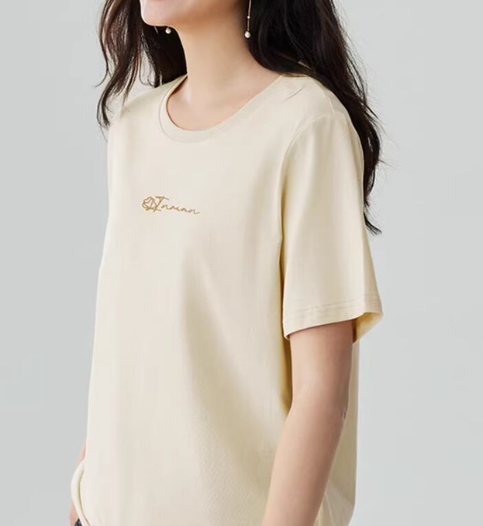 シンプルなTシャツの登場!パンツやスカート、どんなボトムスにも合わせやすいデザイン。