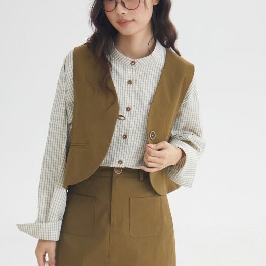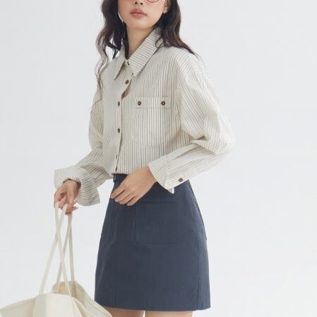 ミディアム丈で、胸ポケットが可愛いアクセントとなり、シンプルでありながら上品さを感じさせるアイテムです。