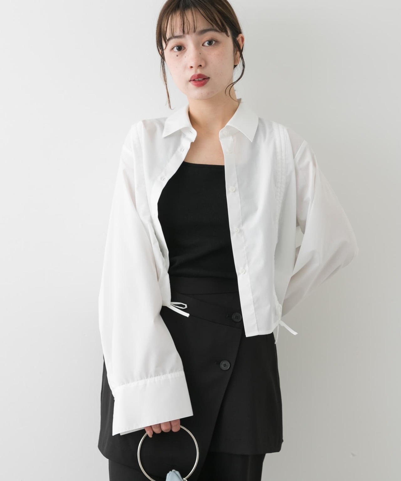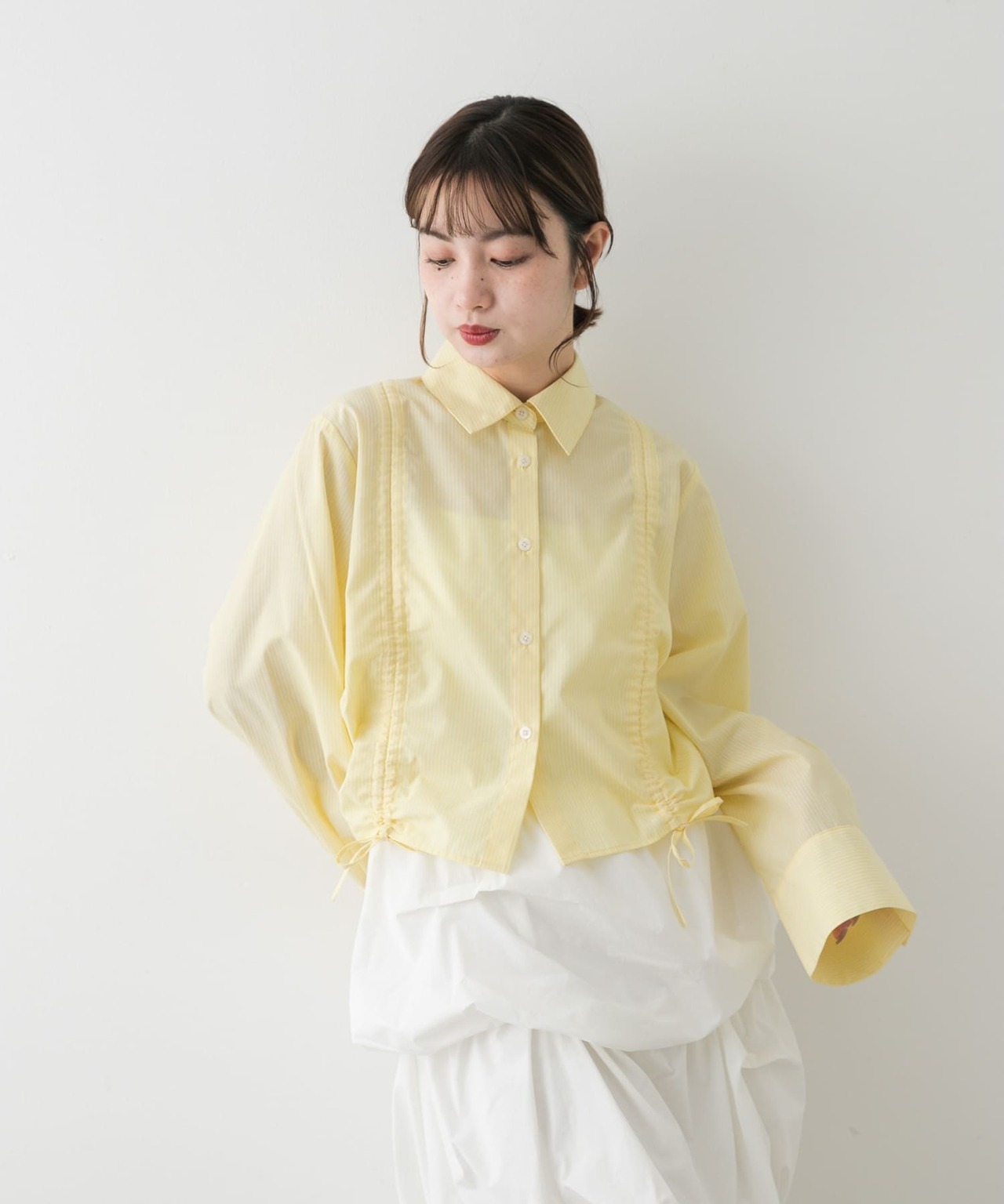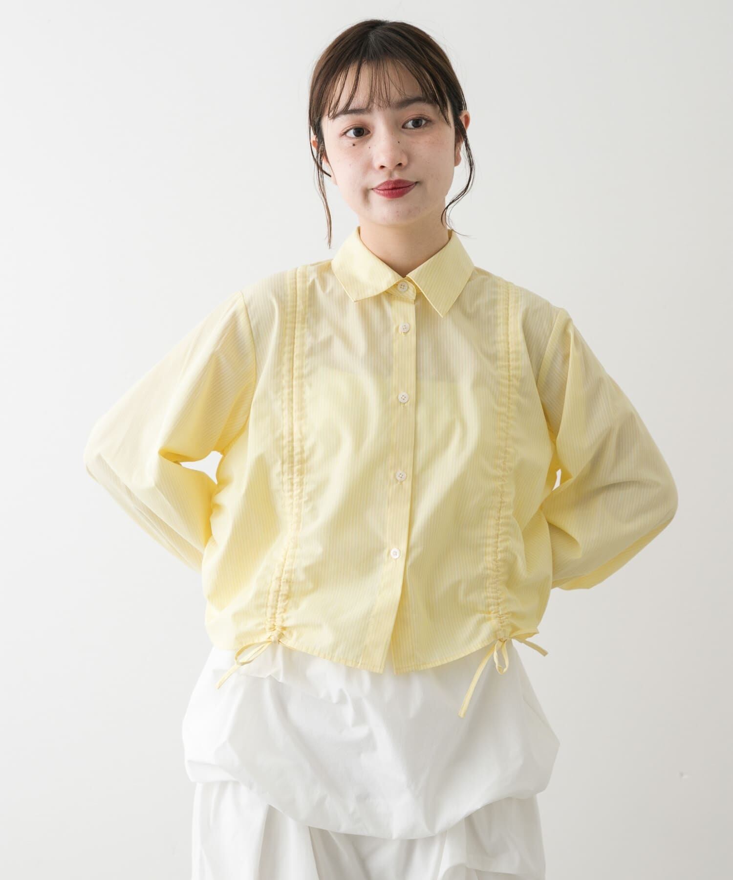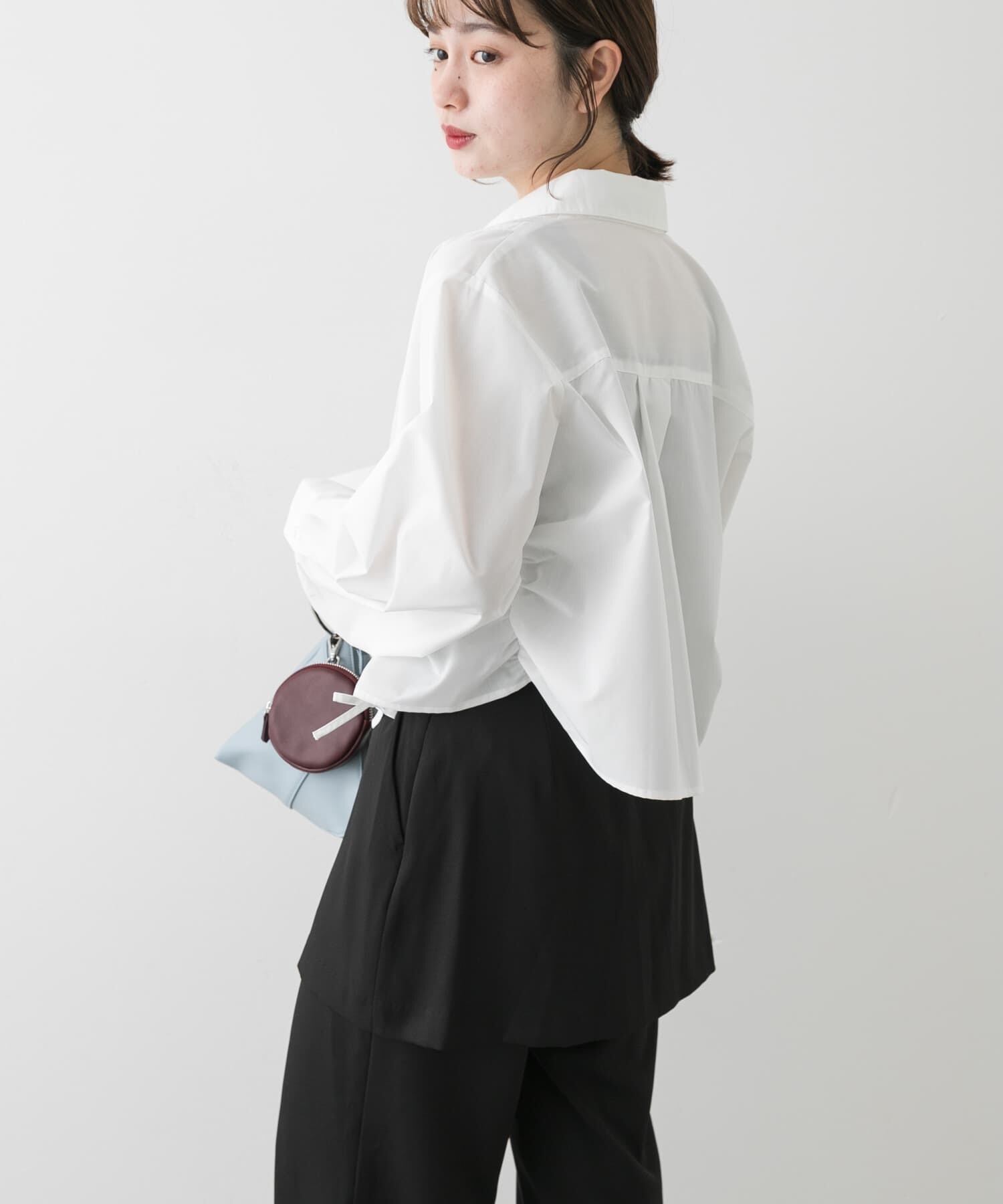 トップス シャツ 長袖 襟付き 前開き ボタン ショート丈 ドロスト 可愛い かわいい 大人可愛い きれいめ シンプル 上品 レトロ おしゃれ かっこいい カジュアル こなれ感 個性的 主役級 存在感 抜け感 春 夏 ベーシック ナチュラル フェミニン ガーリー 清楚 無地 女性用 レディース ママ OL 通勤 オフィス 学生 通学 デート お出かけ お泊まり 女子会 旅行 リゾート 休日 アウトドア カフェ ショッピング コンパ イベント 普段使い デイリー 着回し 重ね着 ワンサイズ トレンド | SPARKJOY レディースファッション