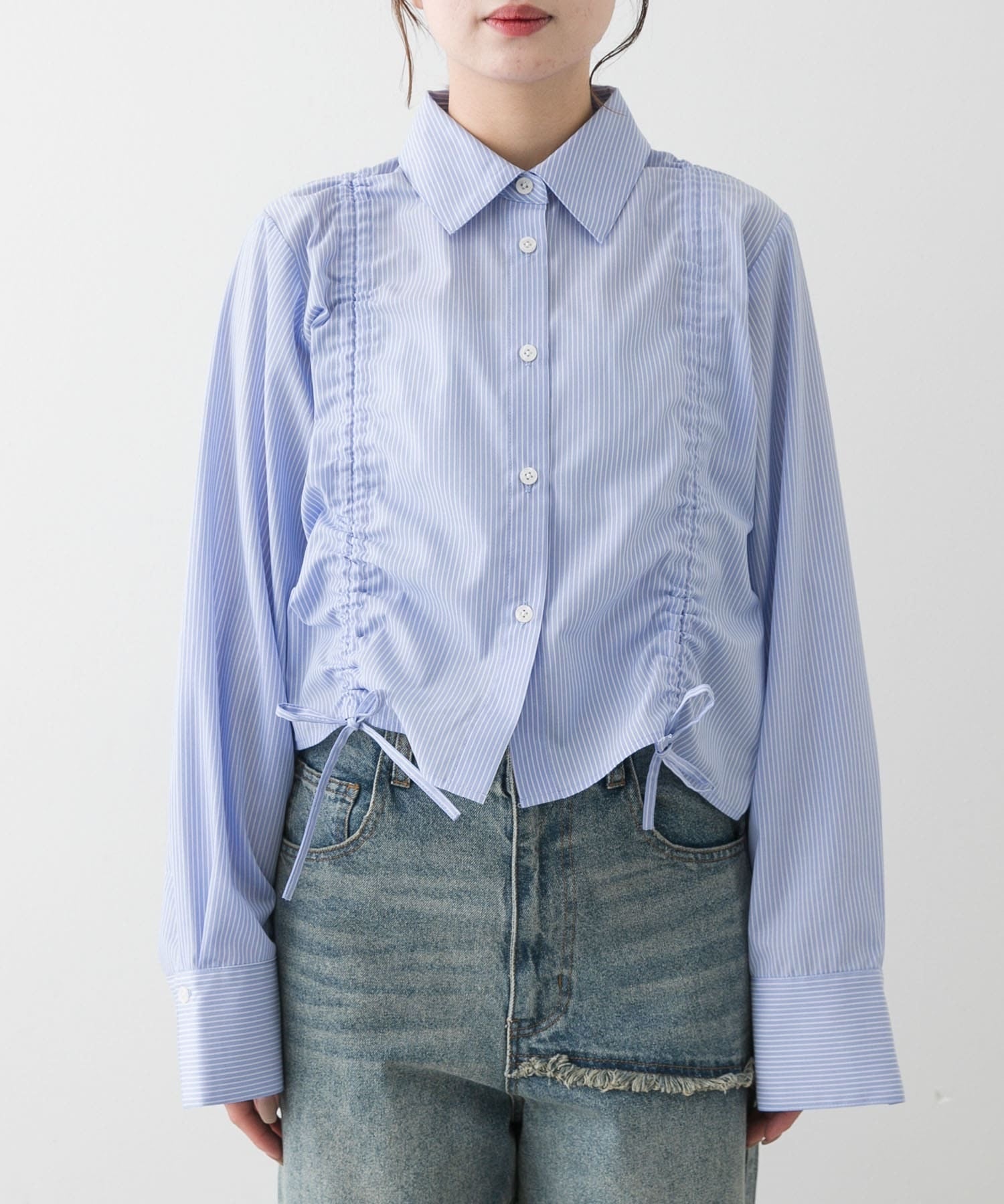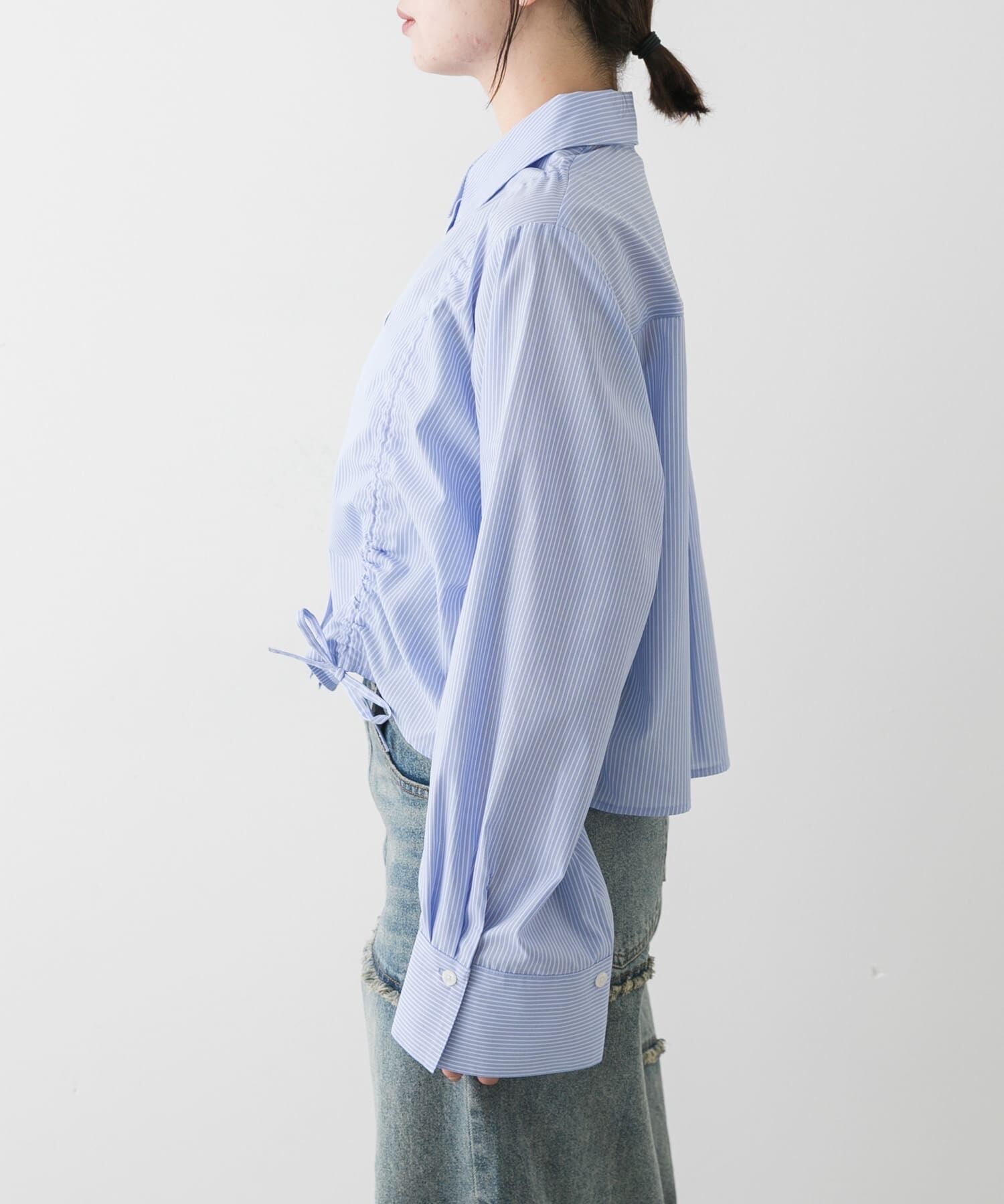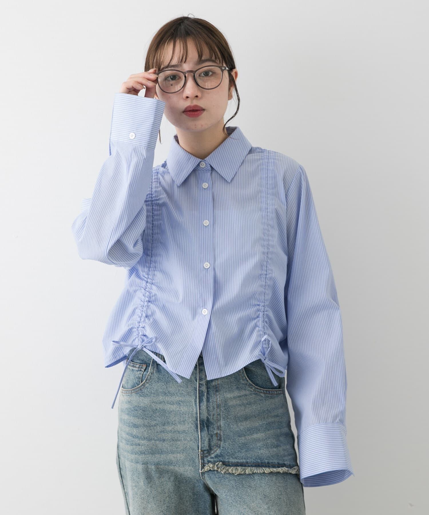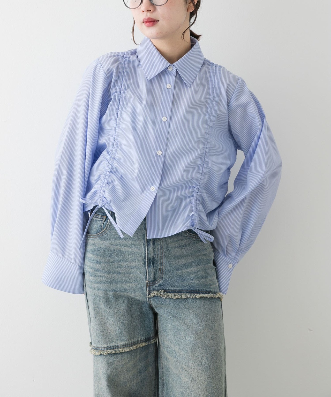 トップス シャツ 長袖 襟付き 前開き ボタン ショート丈 ドロスト 可愛い かわいい 大人可愛い きれいめ シンプル 上品 レトロ おしゃれ かっこいい カジュアル こなれ感 個性的 主役級 存在感 抜け感 春 夏 ベーシック ナチュラル フェミニン ガーリー 清楚 無地 女性用 レディース ママ OL 通勤 オフィス 学生 通学 デート お出かけ お泊まり 女子会 旅行 リゾート 休日 アウトドア カフェ ショッピング コンパ イベント 普段使い デイリー 着回し 重ね着 ワンサイズ トレンド | SPARKJOY レディースファッション