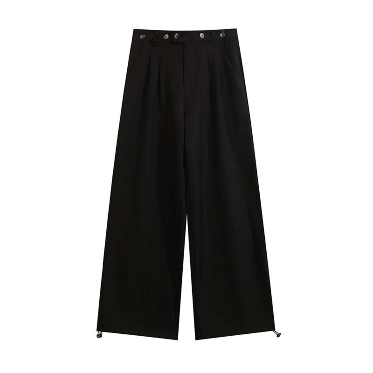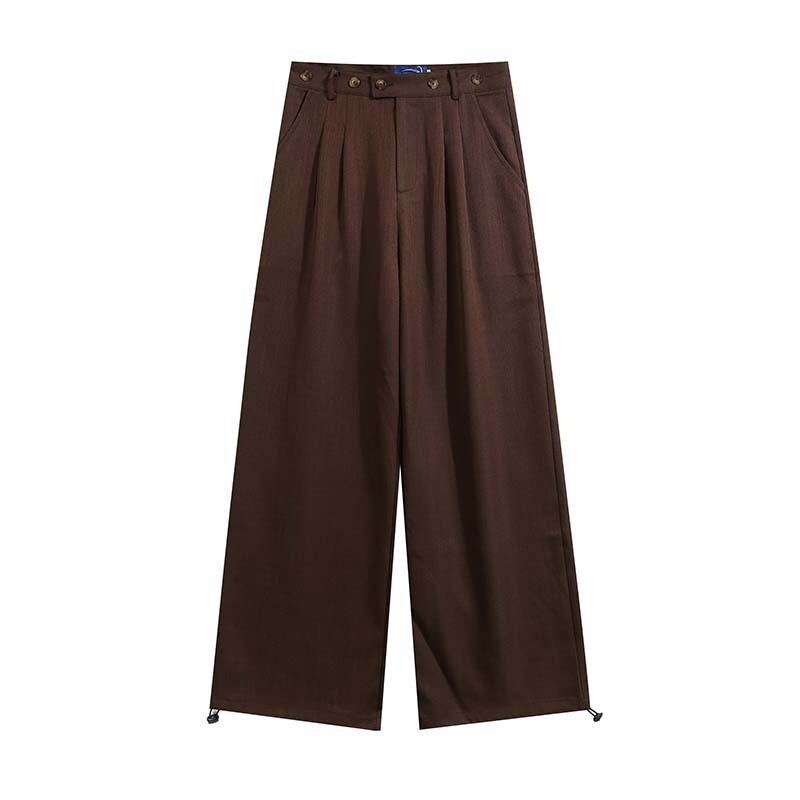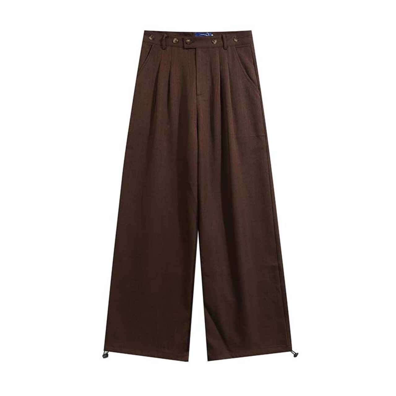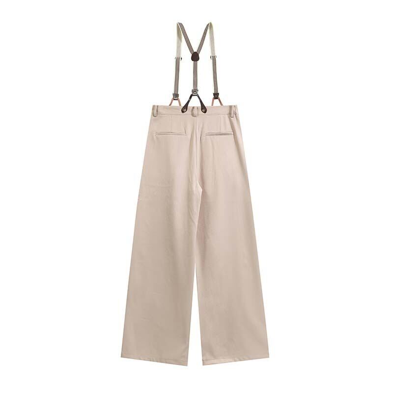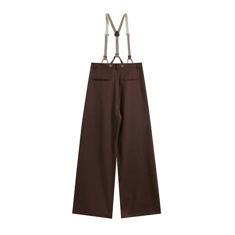 ゆったりとしたシルエットが魅力のサスペンダー付きワイドパンツ。カジュアルにもきれいめにも合わせやすい一枚です。