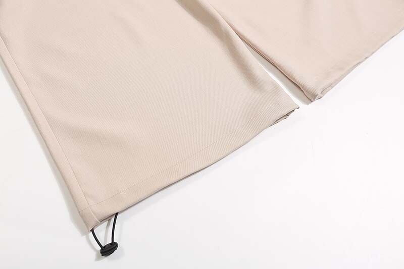 取り外し可能なサスペンダーは、スタイルに変化をつけられる万能デザイン。裾にはドローコードが施されているため、シルエットの調整も可能です。