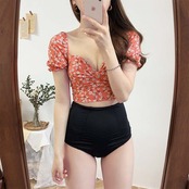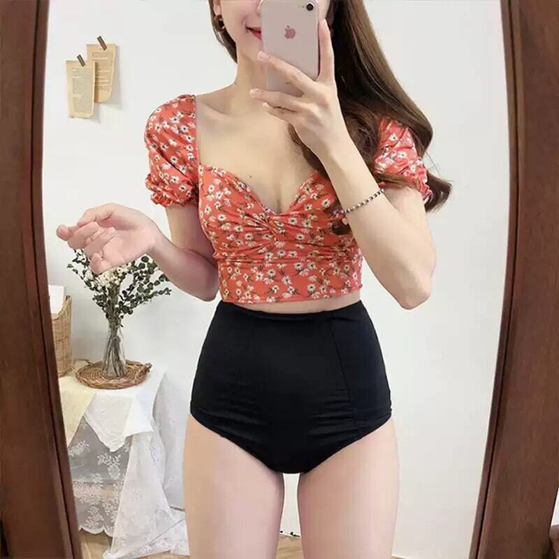 水着 スイムウェア レディース タンキニ 体型カバー 二の腕カバー 半袖 セット ツーピース 上下セット かわいい 大人可愛い きれいめ カジュアル ナチュラル 華やか 大人っぽい おしゃれ レトロ キュート ガーリー 個性的 クール セクシー トレンド ベーシック フェミニン ヘルシー 花柄 リゾート 旅行 温泉 プール 夏 海 美脚 脚長 着痩せ スタイルアップ 韓国 高見え 格上げ 背中見せ 体型カバー インスタ映え スタイルカバー こなれ感 M L XL スリム ブラック ブルー ピンク | SPARKJOY レディースファッション
