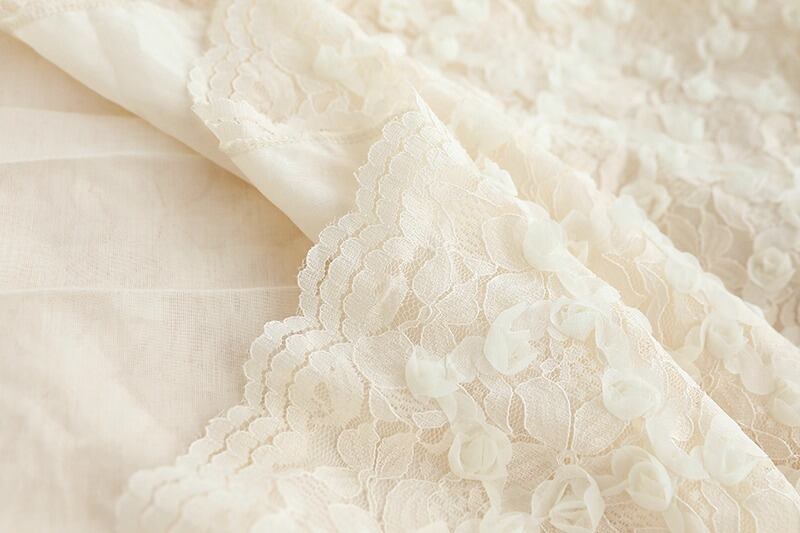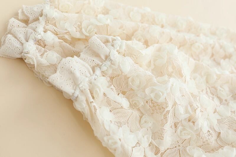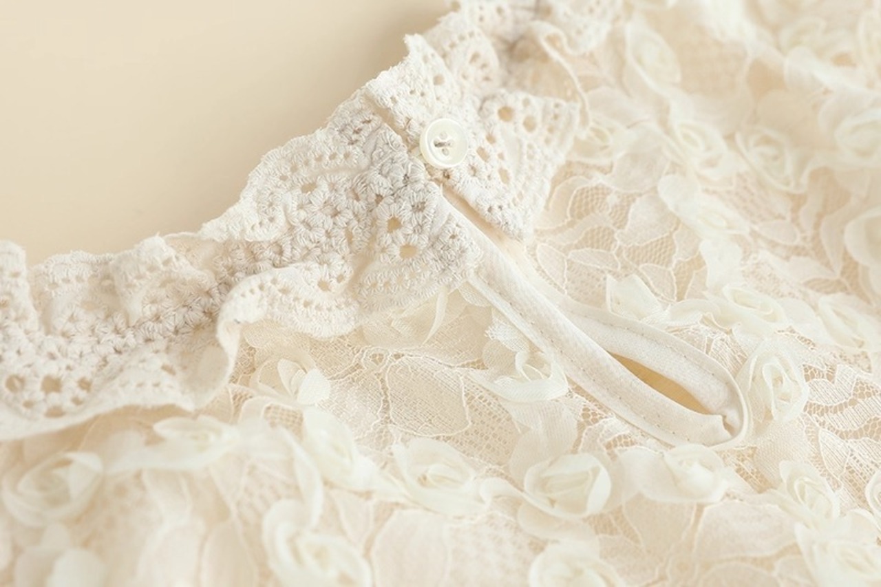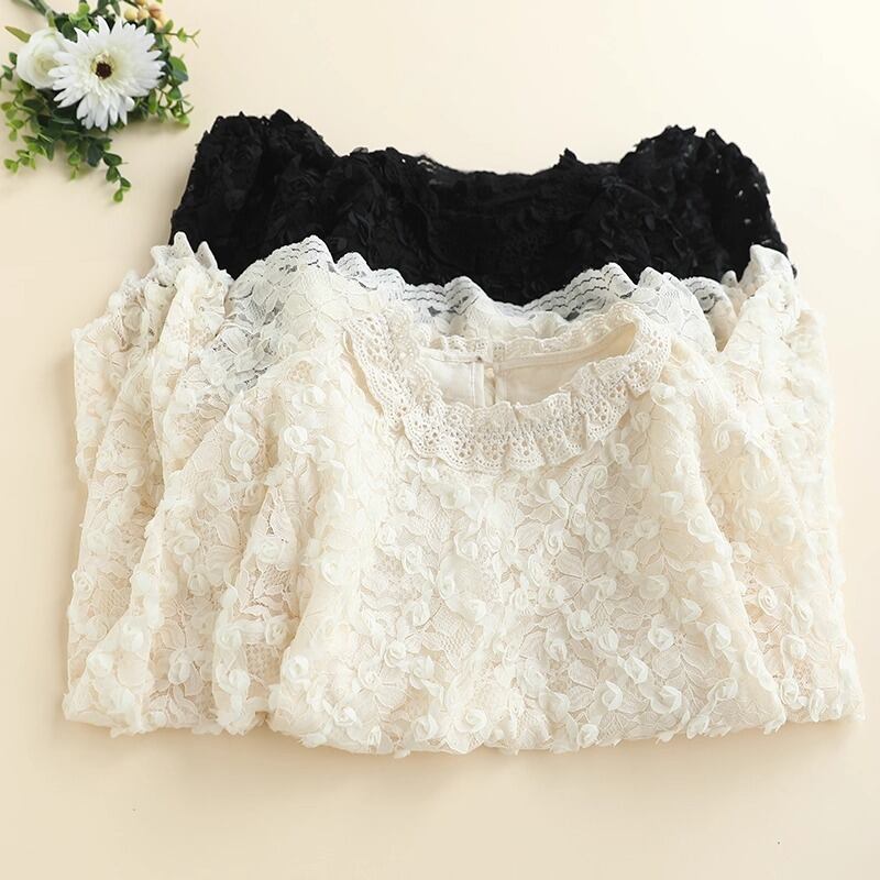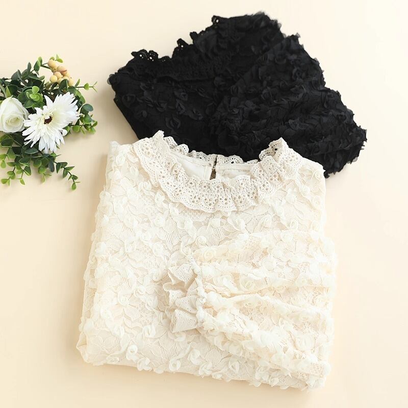 繊細なレースの花柄が華やかさを引き立てる、フェミニンなレースブラウスです。立体感のあるフラワーモチーフが全体にあしらわれ、上品でありながら柔らかな印象を与えます。