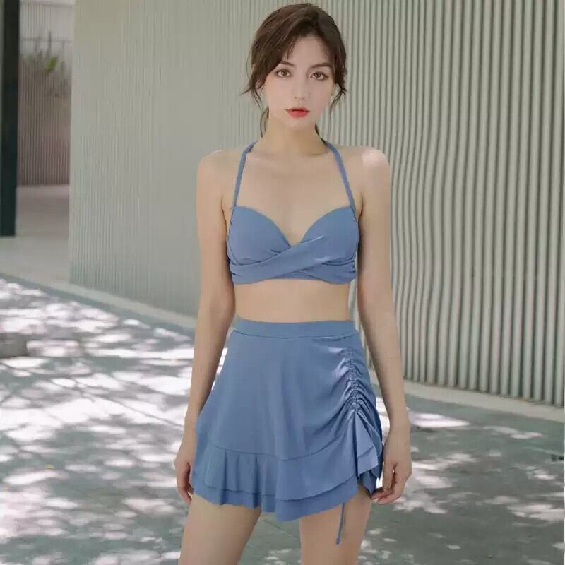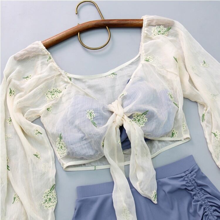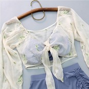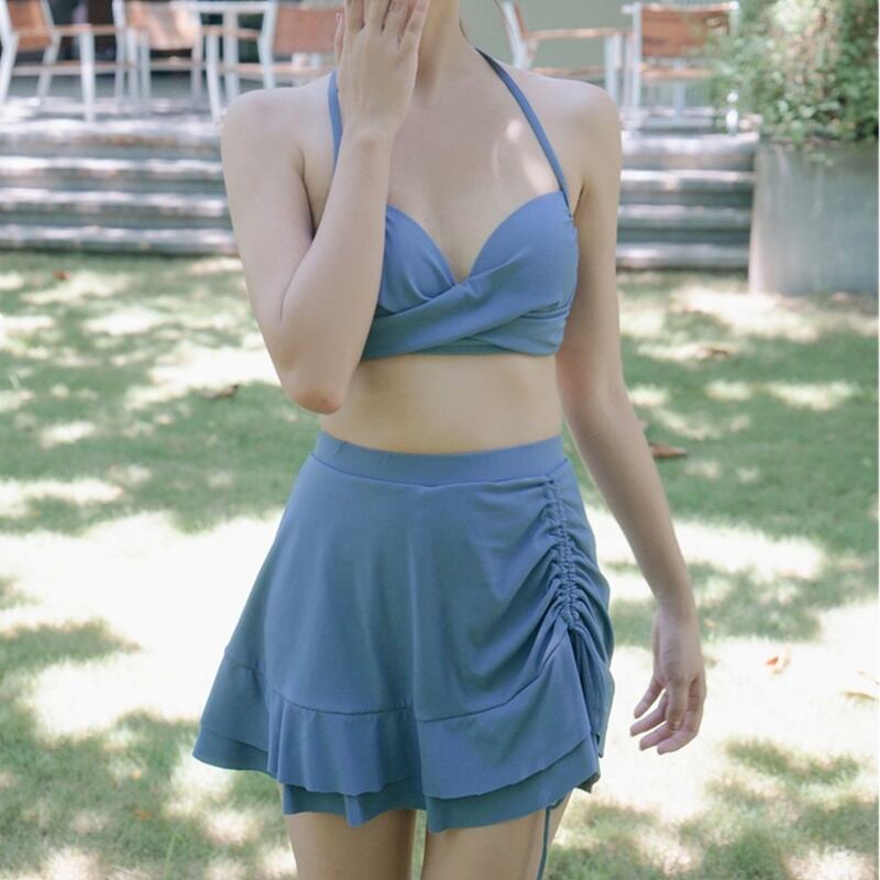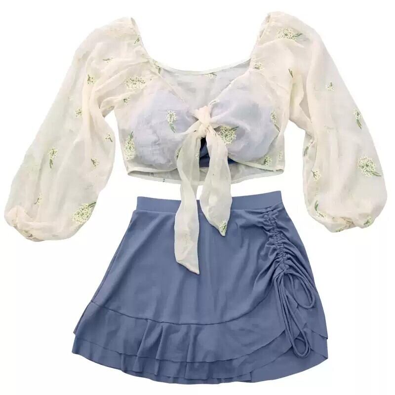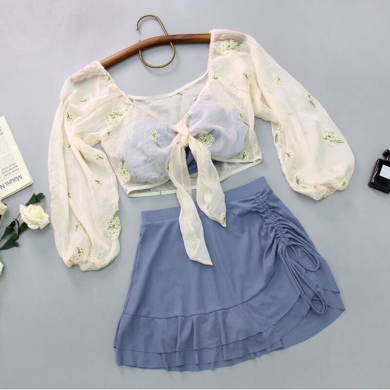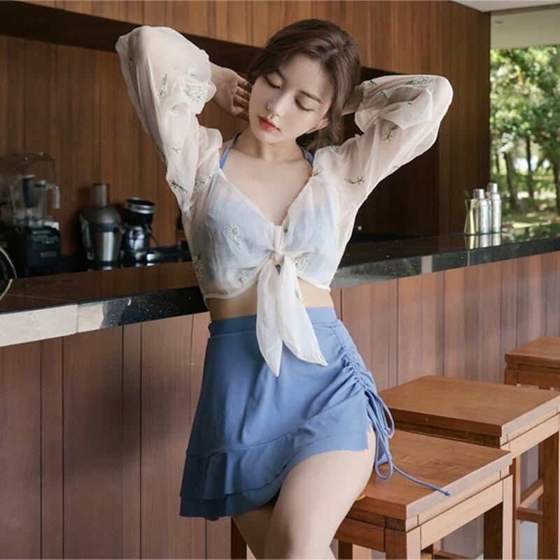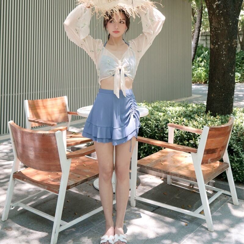 セパレート水着 シアートップス 水着 レディース タンキニ ホルターネック 二の腕カバー 長袖 シアー 透け感 セット スリーピース 上下セット かわいい 大人可愛い きれいめ ナチュラル 華やか 大人っぽい おしゃれ ラブリー キュート ガーリー 個性的 クール セクシー トレンド ベーシック フェミニン ヘルシー リゾート 旅行 温泉 プール 夏 海 美脚 脚長 着痩せ スタイルアップ 韓国 高見え 格上げ モテ 体型カバー インスタ映え 日除け スタイルカバー こなれ感 M L XL スリム ブルー | SPARKJOY レディースファッション