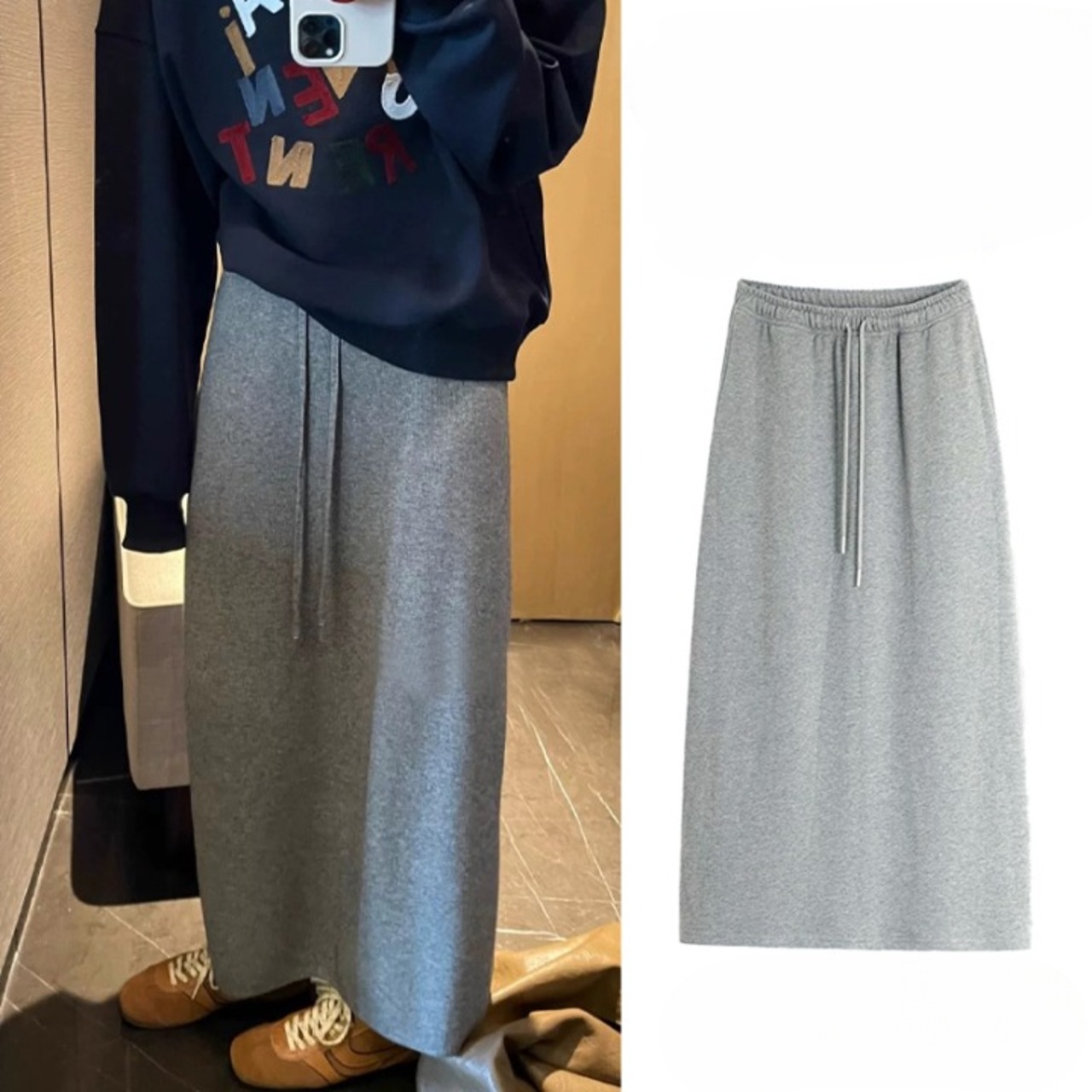 大人可愛い魅力を引き立てるロングニットスカート