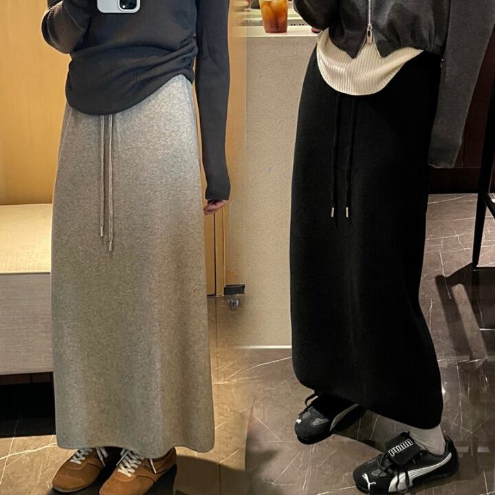 ボトムス スカート ロングスカート ニットスカート ウエストゴム ストレート Iライン ロング丈 可愛い かわいい 大人可愛い きれいめ シンプル 上品 おしゃれ カジュアル レトロ こなれ感 個性的 ラフ 主役級 存在感 抜け感 秋 冬 ベーシック ナチュラル クール メンズライク 無地 女性用 レディース ママ OL 通勤 オフィス 学生 通学 デート お出かけ お泊まり 女子会 旅行 休日 カフェ ショッピング イベント 普段使い デイリー 脚長 美脚 M L XL 2XL トレンド モテ 楽ちん | SPARKJOY レディースファッション