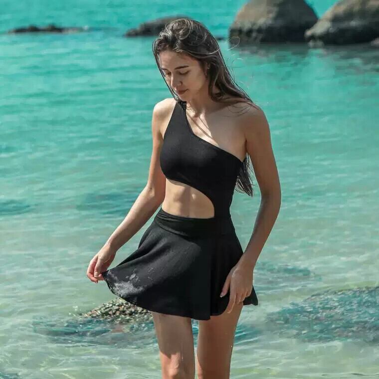ワンショルダーのデザインがエレガントさを引き立て、シンプルながらも華やかな印象を与えるワンピース水着☆