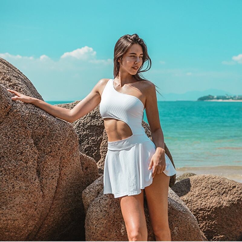 ワンピース水着 ワンショルダー 水着 スイムウェア レディース パッド付き かわいい 大人可愛い きれいめ シンプル ナチュラル 華やか 大人っぽい おしゃれ レトロ キュート 個性的 クール モード系 スタイリッシュ モダン かっこいい エキゾチック セクシー フェミニン ヘルシー 無地 リゾート 旅行 温泉 プール 夏 海 美脚 脚長 着痩せ スタイルアップ 韓国 高見え 格上げ モテ 背中見せ 体型カバー インスタ映え スタイルカバー こなれ感 S M L XL スリム ホワイト ブラック ベージュ | SPARKJOY レディースファッション