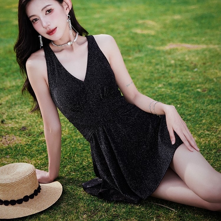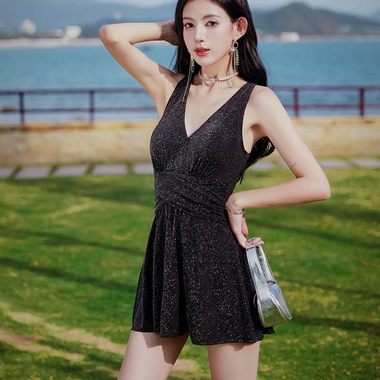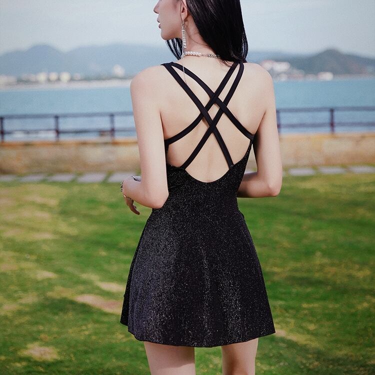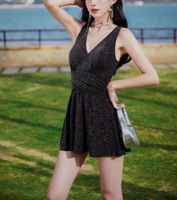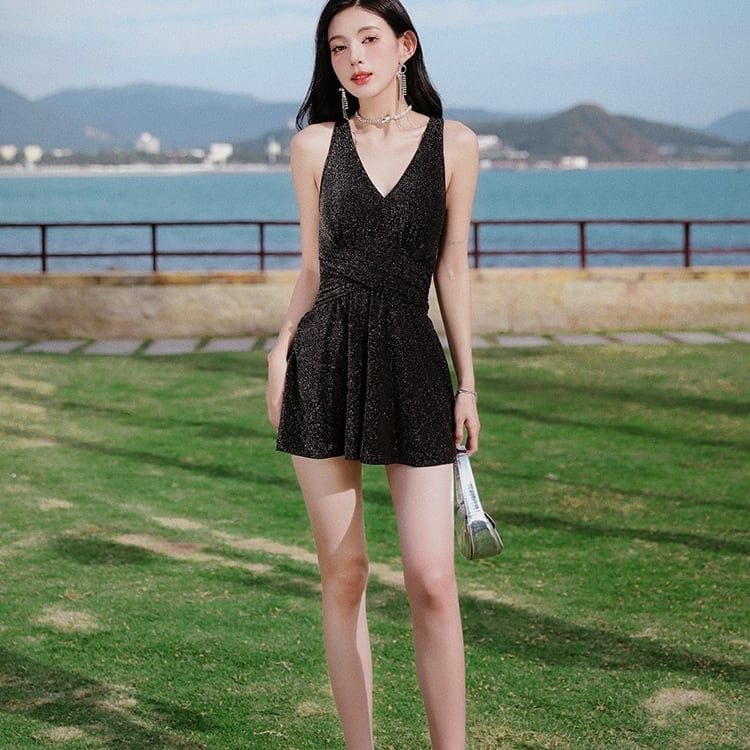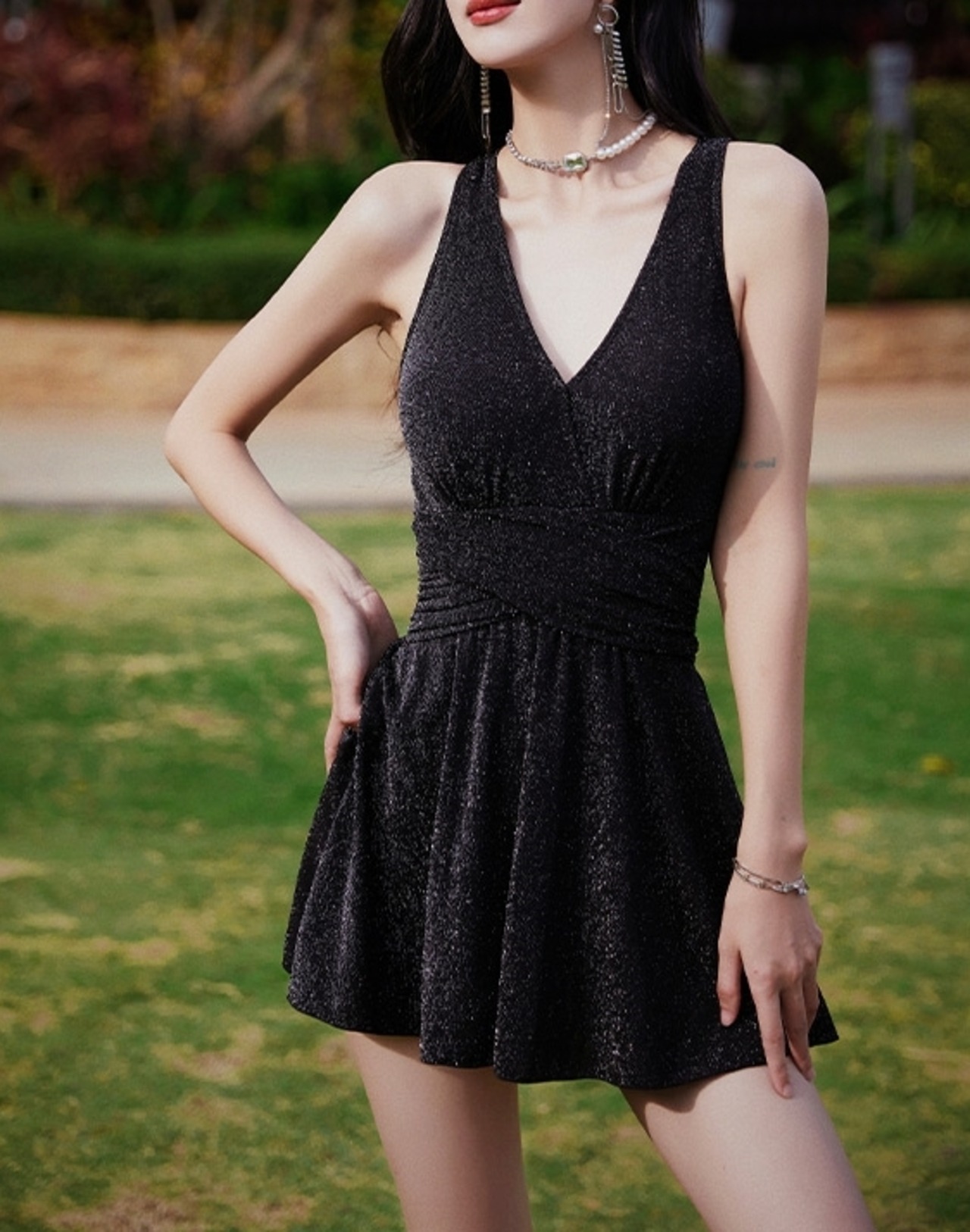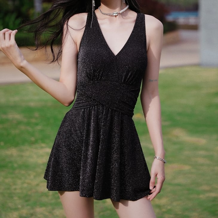 スイムウエア 水着 ワンピース水着 Vネック クロスデザイン バックシャン キラキラ ウエストマーク スカート付き パッド付き 背中開き 洋服みたい 伸縮性 ストレッチ 可愛い かわいい 大人可愛い シンプル カジュアル 大人 おしゃれ お洒落 大人女子 こなれ感 個性的 エレガント 無地 主役級 存在感 抜け感 夏 10代 20代 30代 女性用 レディース ママ デート お出かけ 女子会 休日 イベント 旅行 リゾート バカンス 海 プール 温泉 美脚 脚長 M L XL 2XL トレンド モテ | SPARKJOY レディースファッション