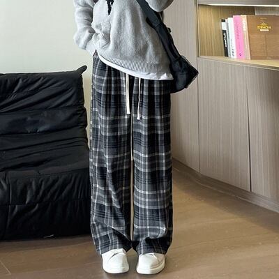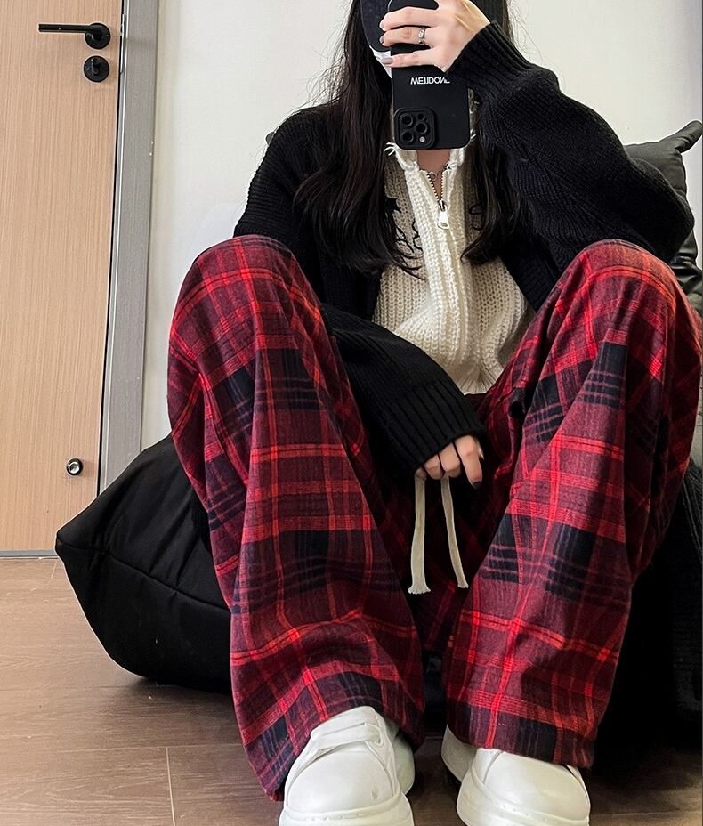 ボトムス パンツ ロングパンツ ストレートパンツ カジュアルパンツ ウエストゴム ポケット 可愛い かわいい 大人可愛い きれいめ シンプル 上品 おしゃれ カジュアル レトロ こなれ感 個性的 主役級 ラフ ルーズ 存在感 抜け感 秋 冬 ベーシック ナチュラル メンズライク チェック柄 女性用 レディース ママ OL 通勤 オフィス 学生 通学 デート お出かけ お泊まり 女子会 旅行 休日 アウトドア カフェ ショッピング イベント 普段使い デイリー 脚長 S M L XL トレンド モテ | SPARKJOY レディースファッション