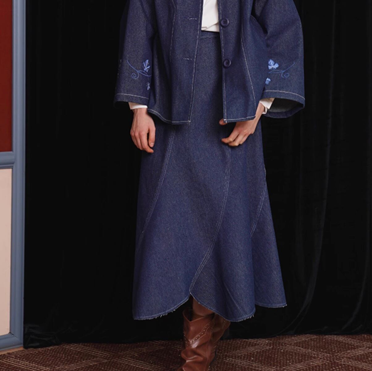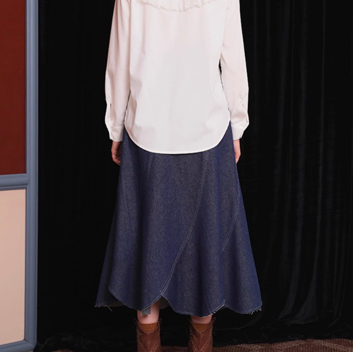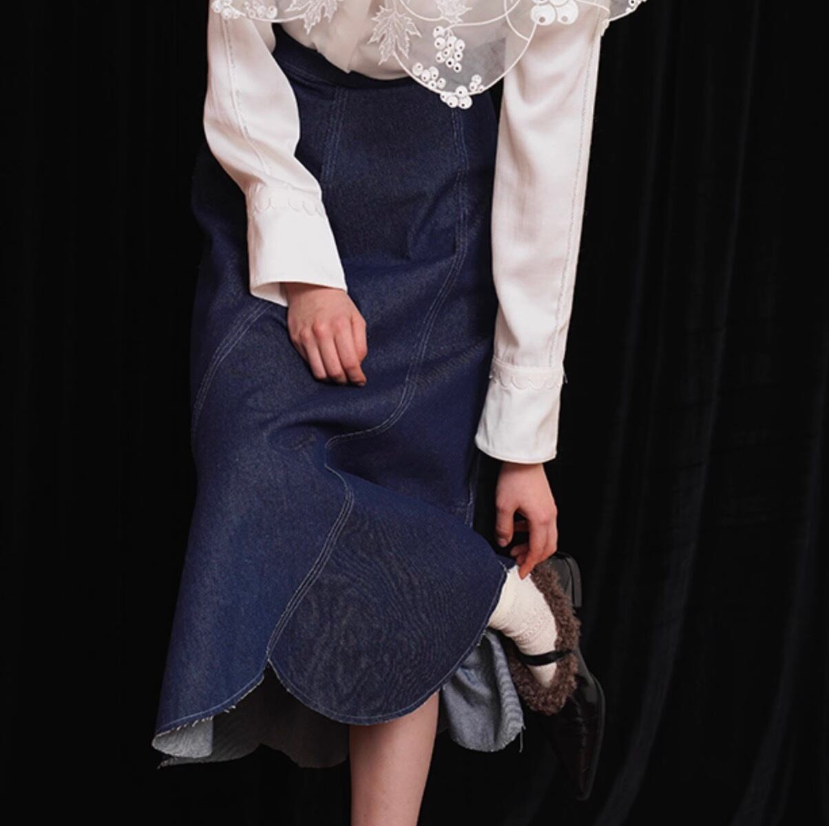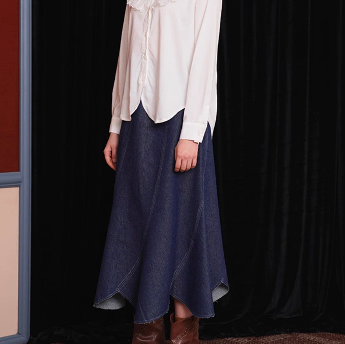 レディース スカート デート ロングスカート デニムスカート ロング ロング丈 ミディアム丈 フレア Aライン 切り替えデザイン ドッキング 伸縮性 デニム ブルーデニム かわいい 大人可愛い きれいめ シンプル カジュアル 上品 おしゃれ お洒落 レトロ 大人女子 こなれ感 ラフ ラブリー キュート ガーリー 個性的 クール モード系 エレガント モダン 主役級 存在感 抜け感 無地 レディース デート お出かけ 女子会 休日 アウトドア 旅行 着回し 普段使い ファッション コーデ スタイル モテ | SPARKJOY レディースファッション