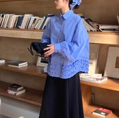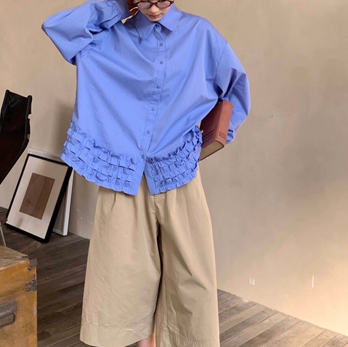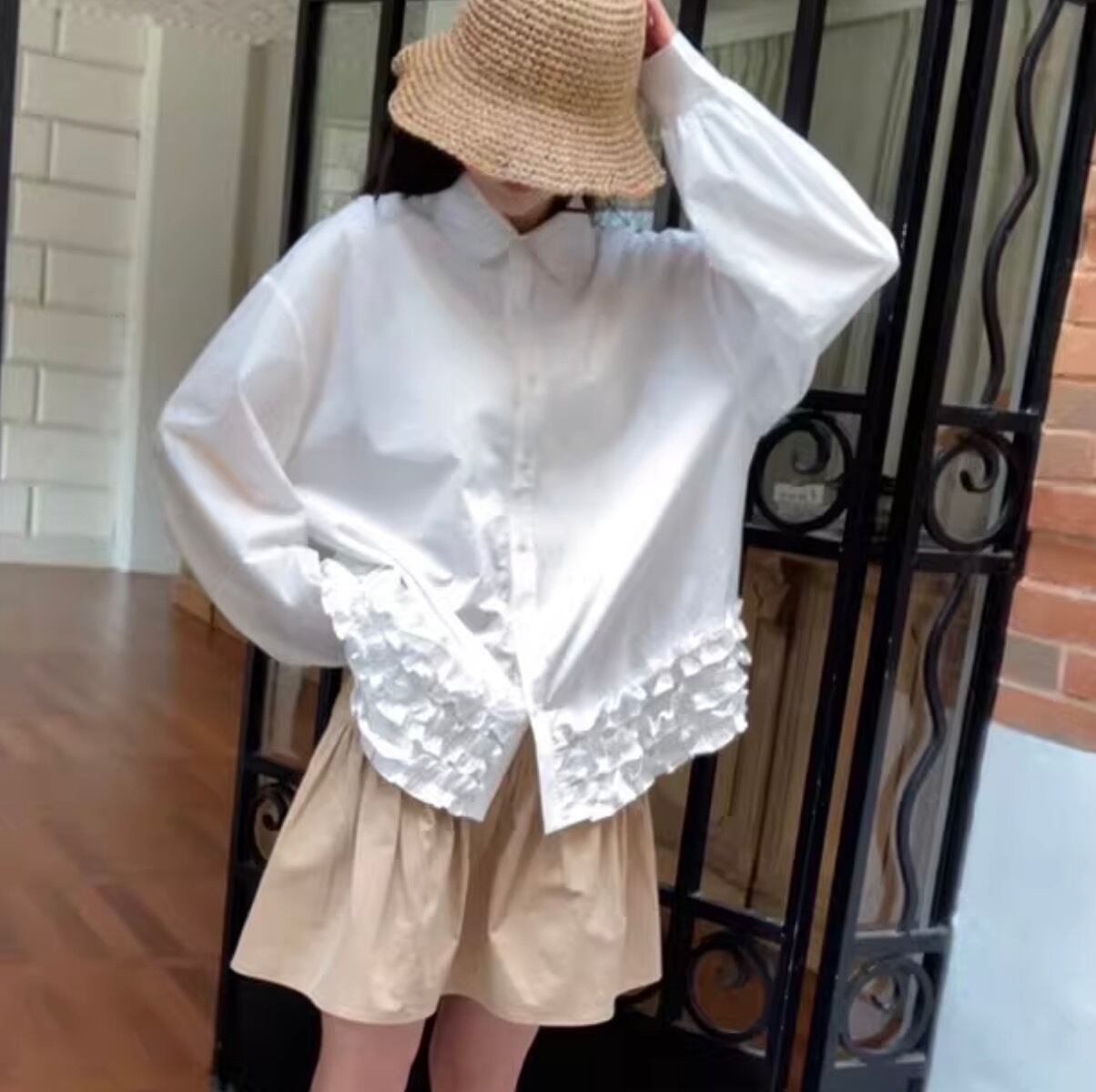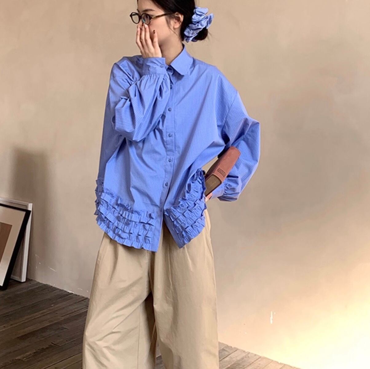 大人可愛いデザインのブラウスが登場!デートや女子会、お出かけにもぴったりのミディアム丈で、袖ありの長袖が上品さを演出します。ボリューム袖とフリル付きのディテールが、シンプルながらも存在感のあるコーディネートを実現。襟付きのワイドデザインが、クラシカルな雰囲気とモダンな印象を融合し、どんなシーンにも対応可能です!