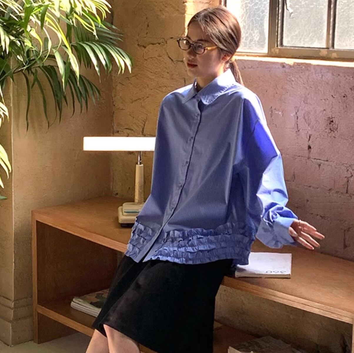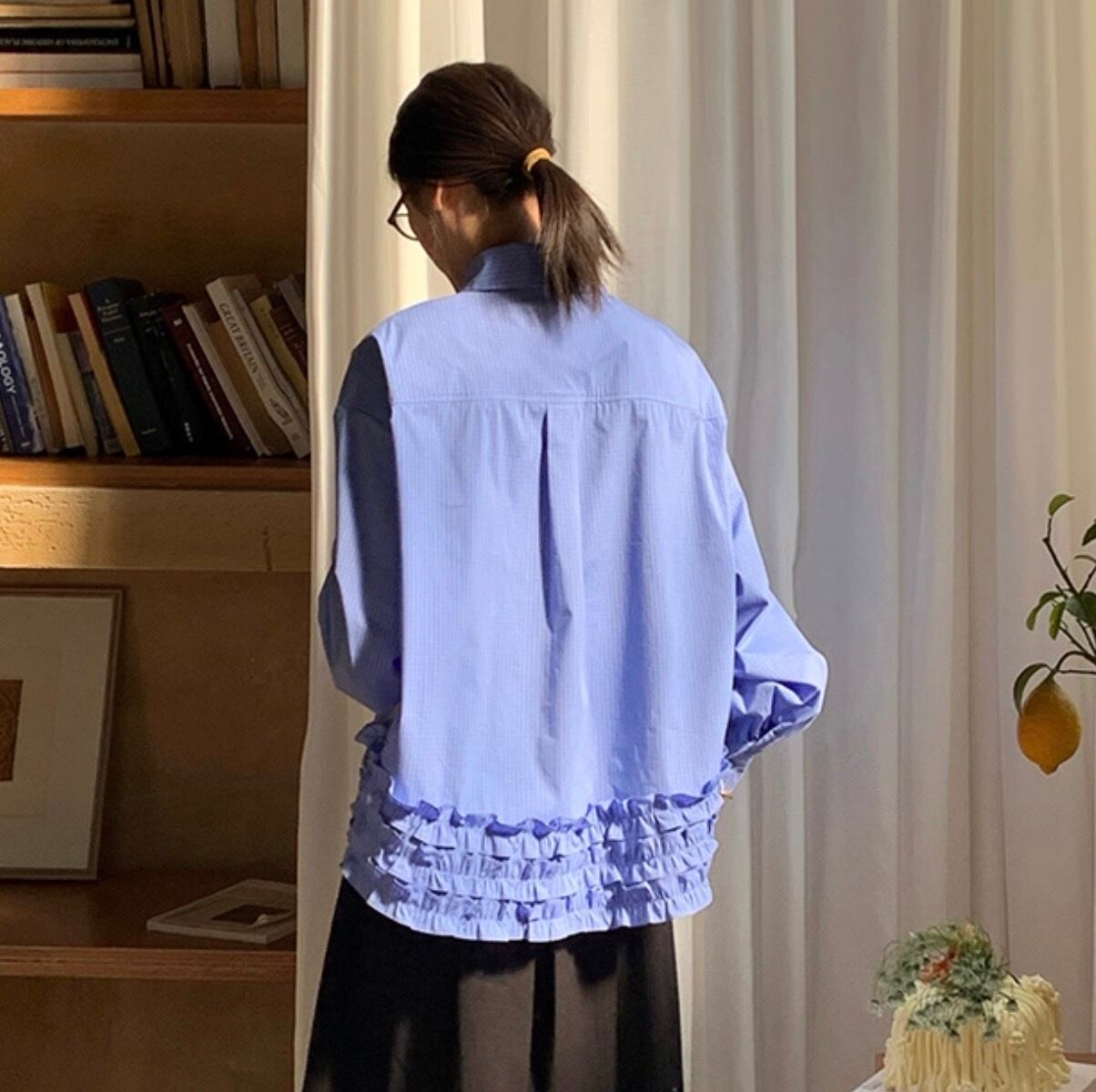レディース トップス ブラウス カットソー デート ミディアム丈 袖あり 長袖 ボリューム袖 萌袖 襟付き ワイド 切り替えデザイン ドッキング フリル 前開き 伸縮性 かわいい 大人可愛い きれいめ シンプル カジュアル 上品 おしゃれ お洒落 レトロ 大人女子 こなれ感 ラフ ラブリー キュート ガーリー 個性的 クール モード系 エレガント モダン 主役級 存在感 抜け感 無地 レディース デート お出かけ 女子会 休日 アウトドア 旅行 着回し 普段使い ファッション コーデ 定番 色展 | SPARKJOY レディースファッション