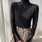 インナーとしても一枚着としても活躍する、長袖ハイネックのカットソーです。