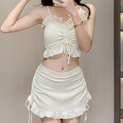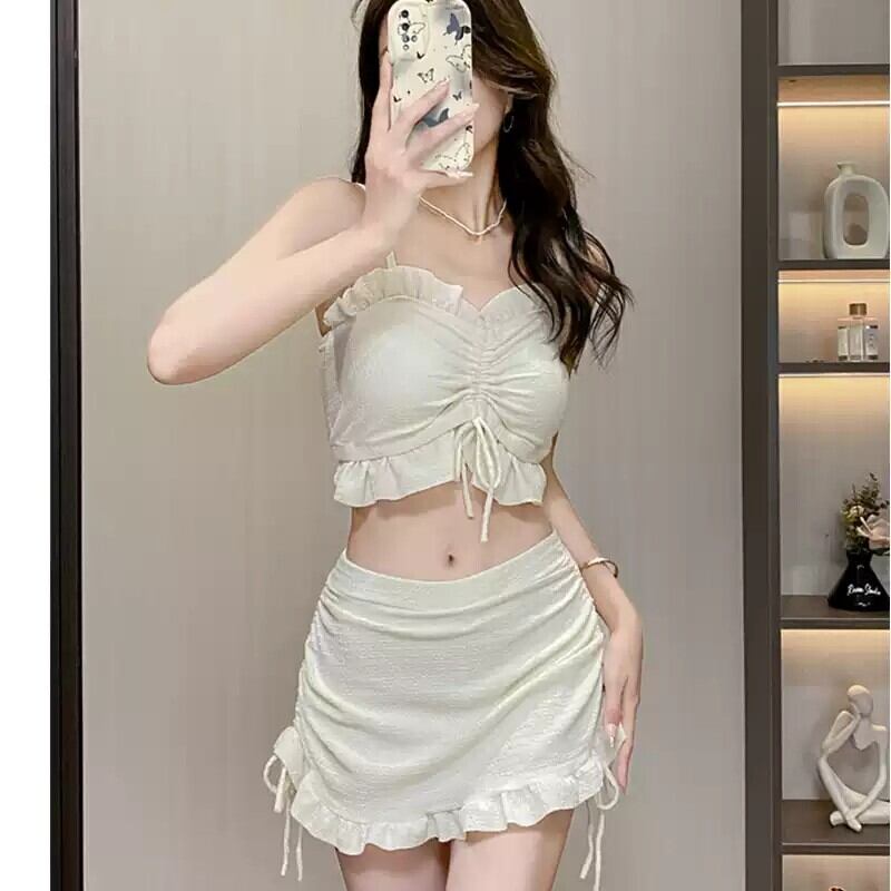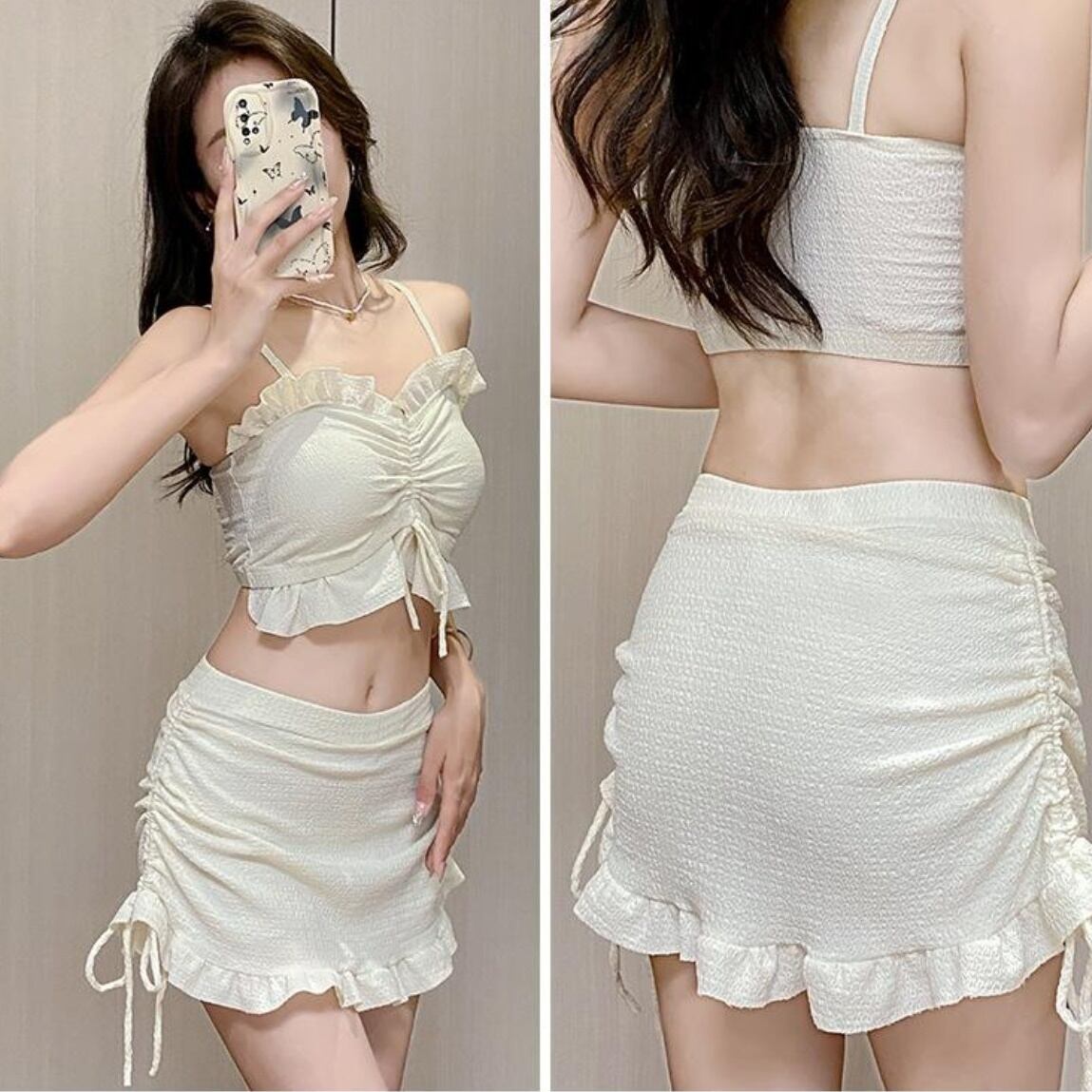 水着 ビキニ スイムウェア レディース タンキニ フリル ウエストリボン シャーリング かわいい 大人可愛い きれいめ シンプル カジュアル ナチュラル 華やか 大人っぽい おしゃれ お洒落 レトロ ラブリー キュート ガーリー 個性的 セクシー トレンド ベーシック フェミニン ヘルシー リゾート 旅行 温泉 プール 夏 海 美脚 脚長 着痩せ スタイルアップ 韓国 高見え 格上げ モテ 背中見せ 体型カバー インスタ映え スタイルカバー こなれ感 M L スリム ホワイト ブラック イエロー ピンク | SPARKJOY レディースファッション