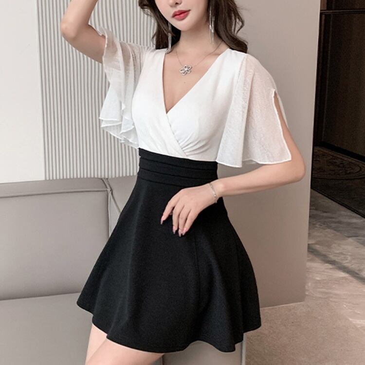 ミニワンピ ミニドレス セクシー シースルー レディース ワンピース ドレス ミニ 5分袖 Vネック フェミニン ふわふわ 透け感 かわいい 大人可愛い きれいめ 上品 おしゃれ かっこいい レトロ こなれ感 個性的 クール モード系 エレガント モダン 主役級 存在感 とろみ感 抜け感 ラブリー キュート 都会的 無地 デート パーティー ホテル ショッピング コンサート ライブ 韓国 オルチャン 美脚 脚長 モテ トレンド 流行 インスタ映え 定番 S M L XL 2XL 3XL ホワイト ブラック | SPARKJOY レディースファッション
