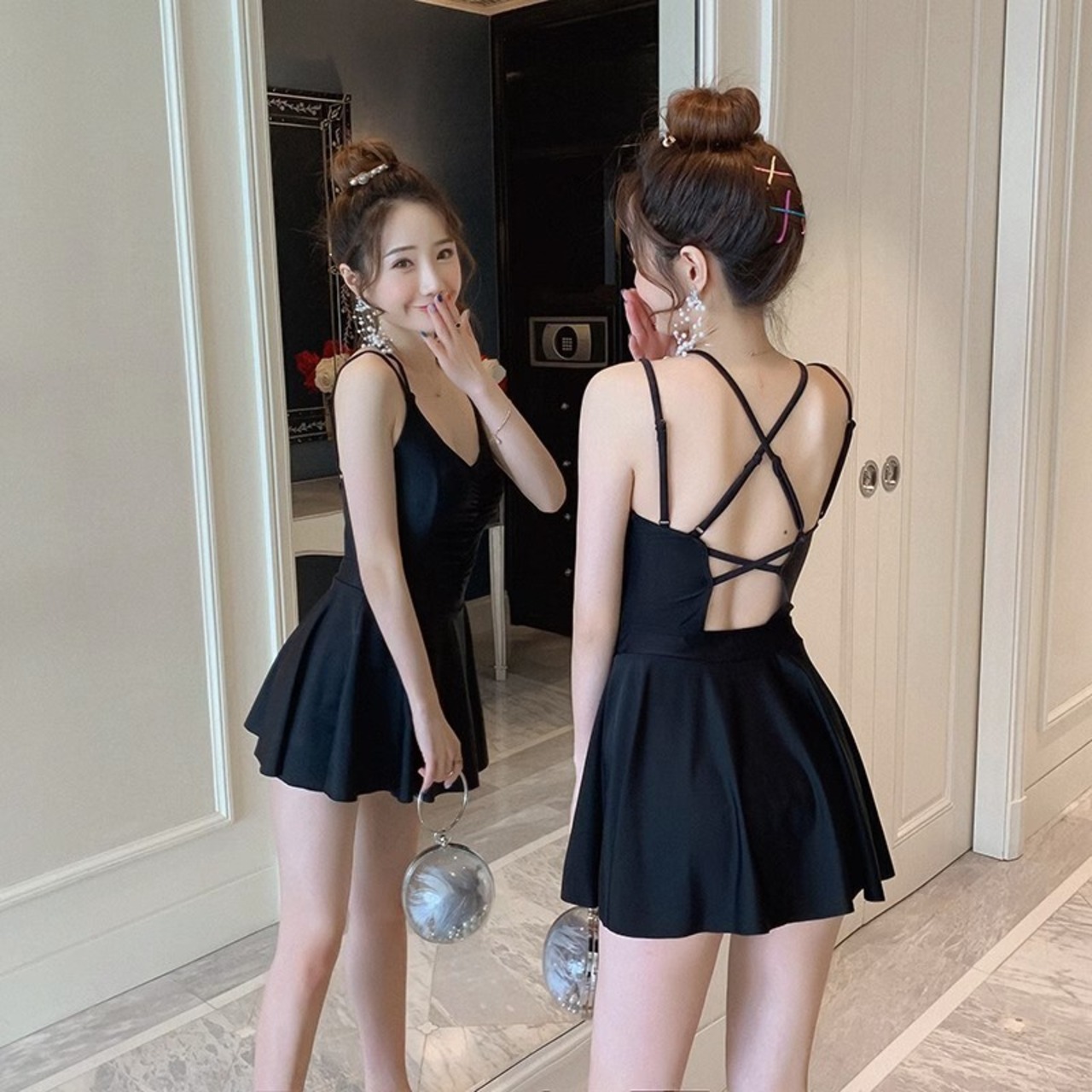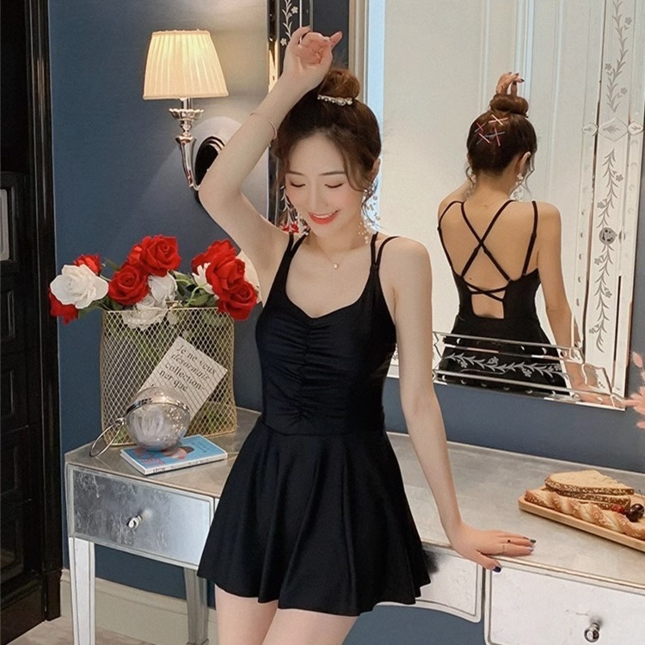 ワンピース水着 水着 スイムウェア レディース 体型カバー かわいい 大人可愛い きれいめ シンプル カジュアル ナチュラル 華やか 大人っぽい おしゃれ お洒落 キュート ガーリー 個性的 クール モード系 スタイリッシュ かっこいい セクシー トレンド ベーシック フェミニン ヘルシー 無地 リゾート 旅行 温泉 プール 夏 海 美脚 脚長 着痩せ スタイルアップ 韓国 高見え 格上げ モテ 背中見せ 体型カバー インスタ映え スタイルカバー こなれ感 M L XL 2XL スリム ブラック 黒 | SPARKJOY レディースファッション