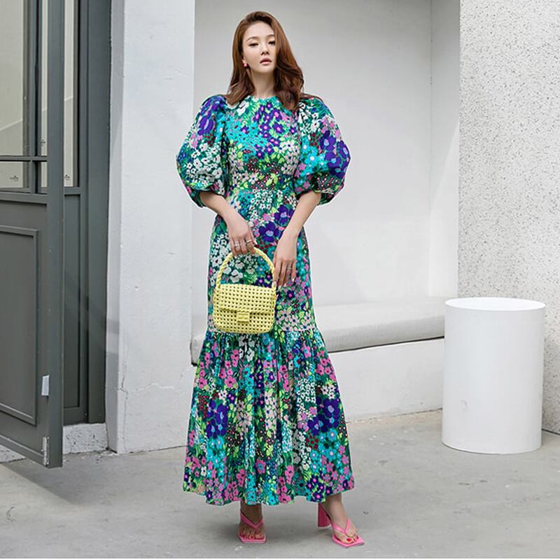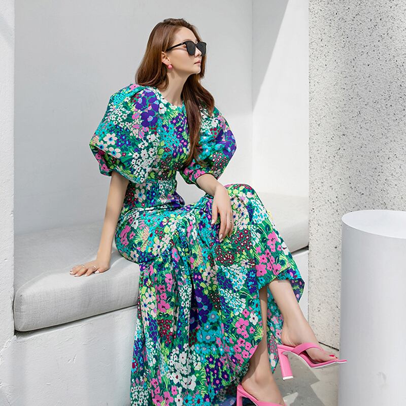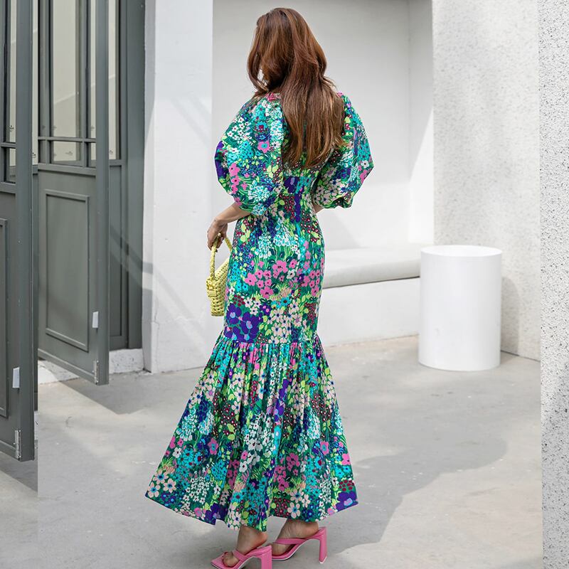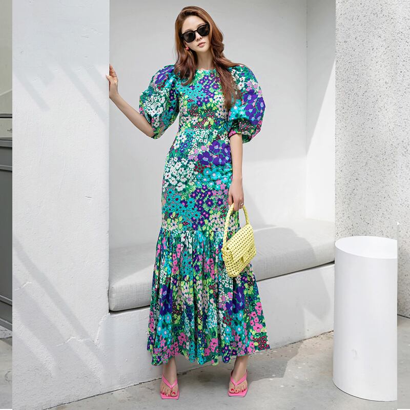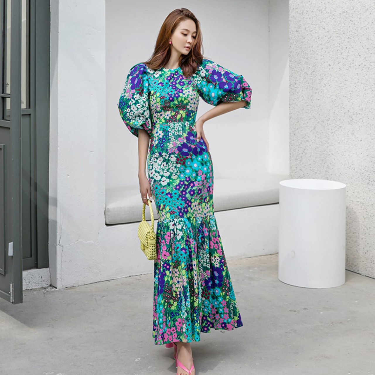 ワンピース ロングワンピース 5分袖 ボリューム袖 パフスリーブ ラウンドネック ウエストマーク マーメードスカート 裾フレア ロング丈 かわいい 大人可愛い きれいめ シンプル 上品 おしゃれ カジュアル こなれ感 個性的 主役級 存在感 抜け感 春 夏 ベーシック ナチュラル エレガント 花柄 女性用 レディース デート お出かけ お泊まり 女子会 旅行 リゾート 休日 カフェ ショッピング コンパ ディナー 二次会 イベント 普段使い デイリー 着回し 重ね着 脚長 S M L XL トレンド モテ | SPARKJOY レディースファッション