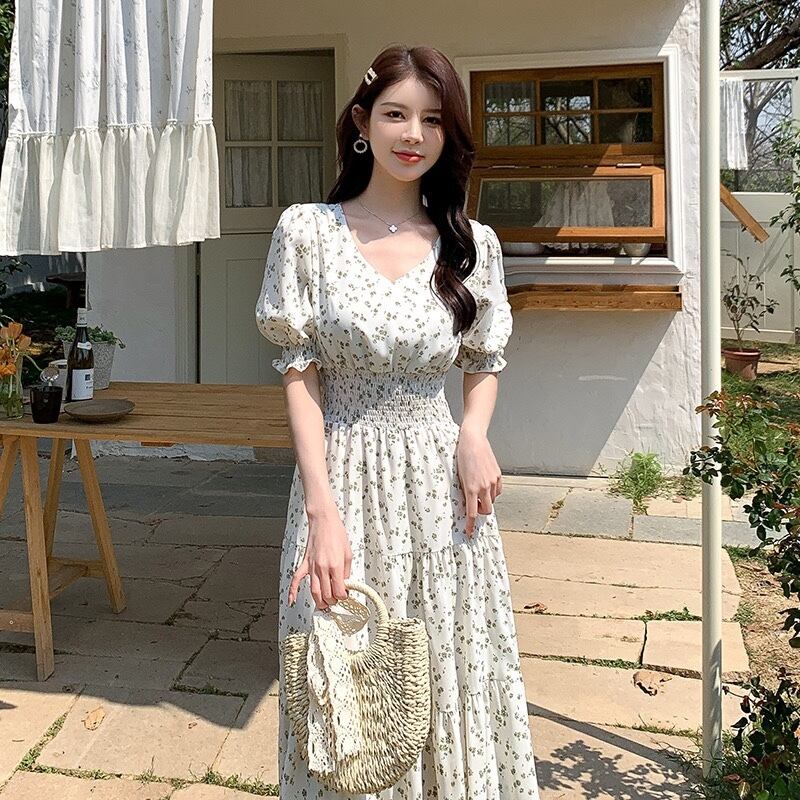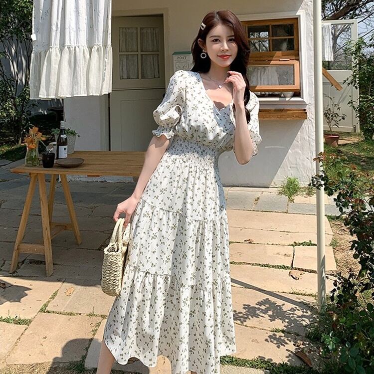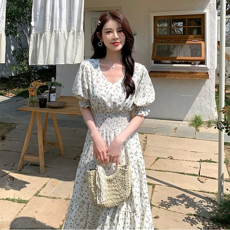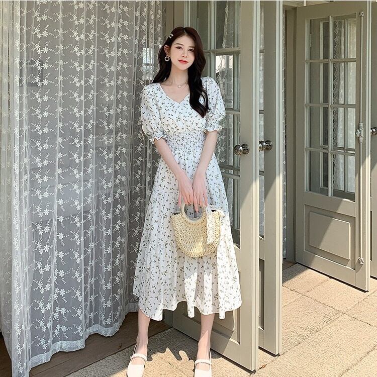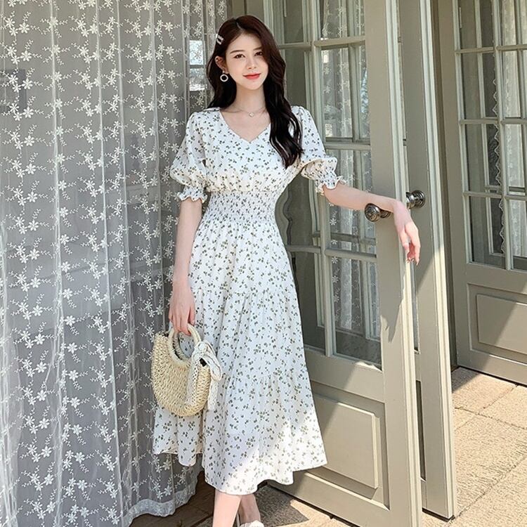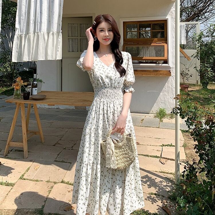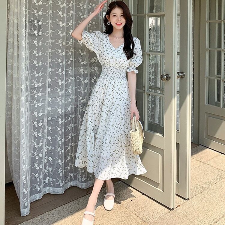 シフォンワンピ シフォンドレス パフスリーブ ロング丈 フレンチ レディース ワンピース フレア ロング マキシ Vネック スリム フェミニン かわいい 大人可愛い きれいめ 上品 おしゃれ こなれ感 ガーリー ラブリー キュート カントリー ナチュラル 花柄 デート お出かけ お泊まり パーティー リゾート 旅行 レストラン 女子会 休日 バカンス ホテル ショッピング 韓国 オルチャン 楽ちん 体型カバー 普段使い 着回し モテ 清楚 トレンド 流行 インスタ映え 定番 S M L XL ホワイト | SPARKJOY レディースファッション