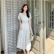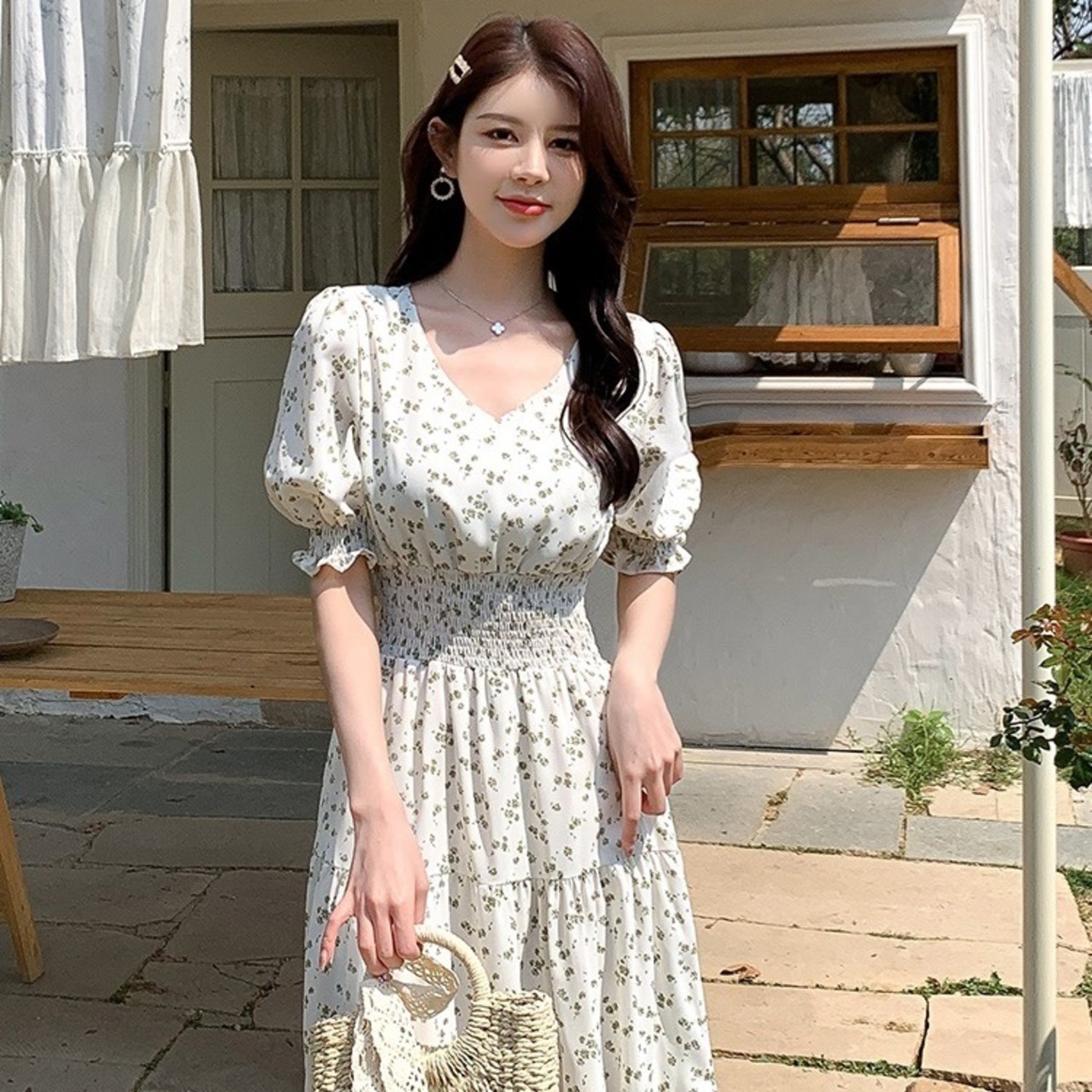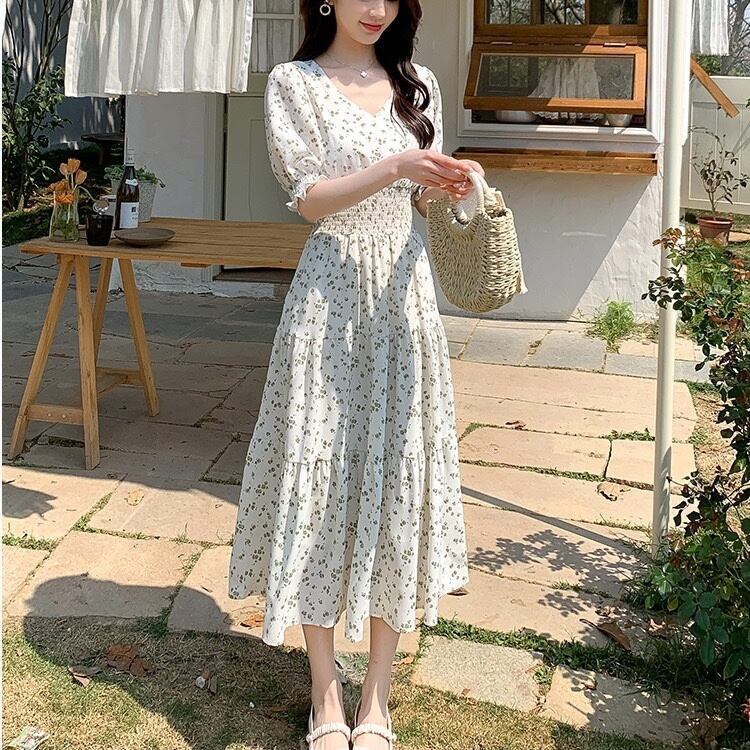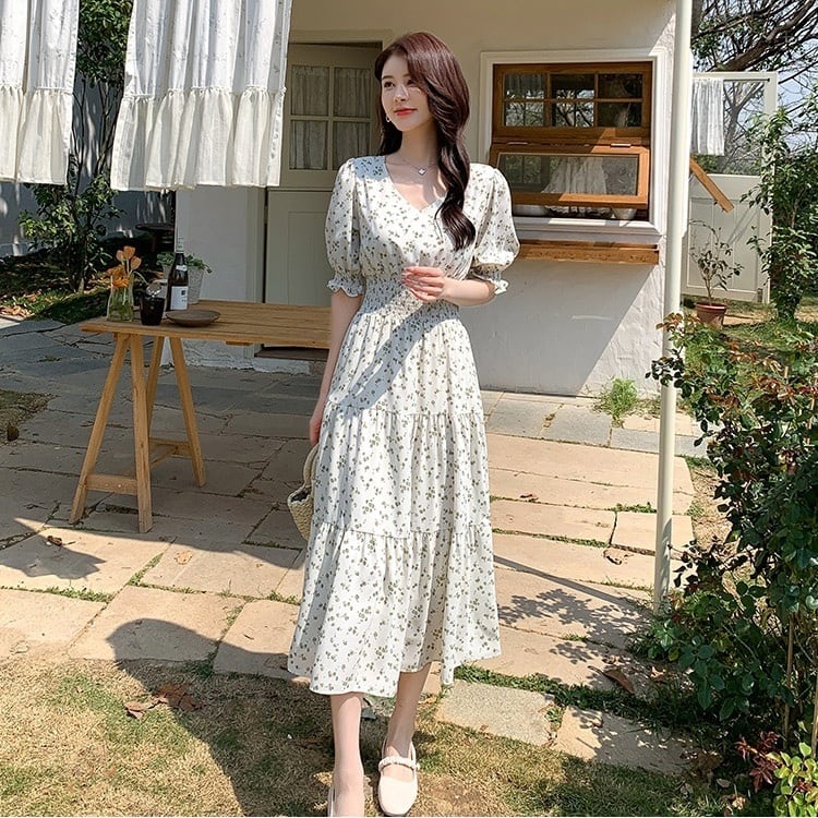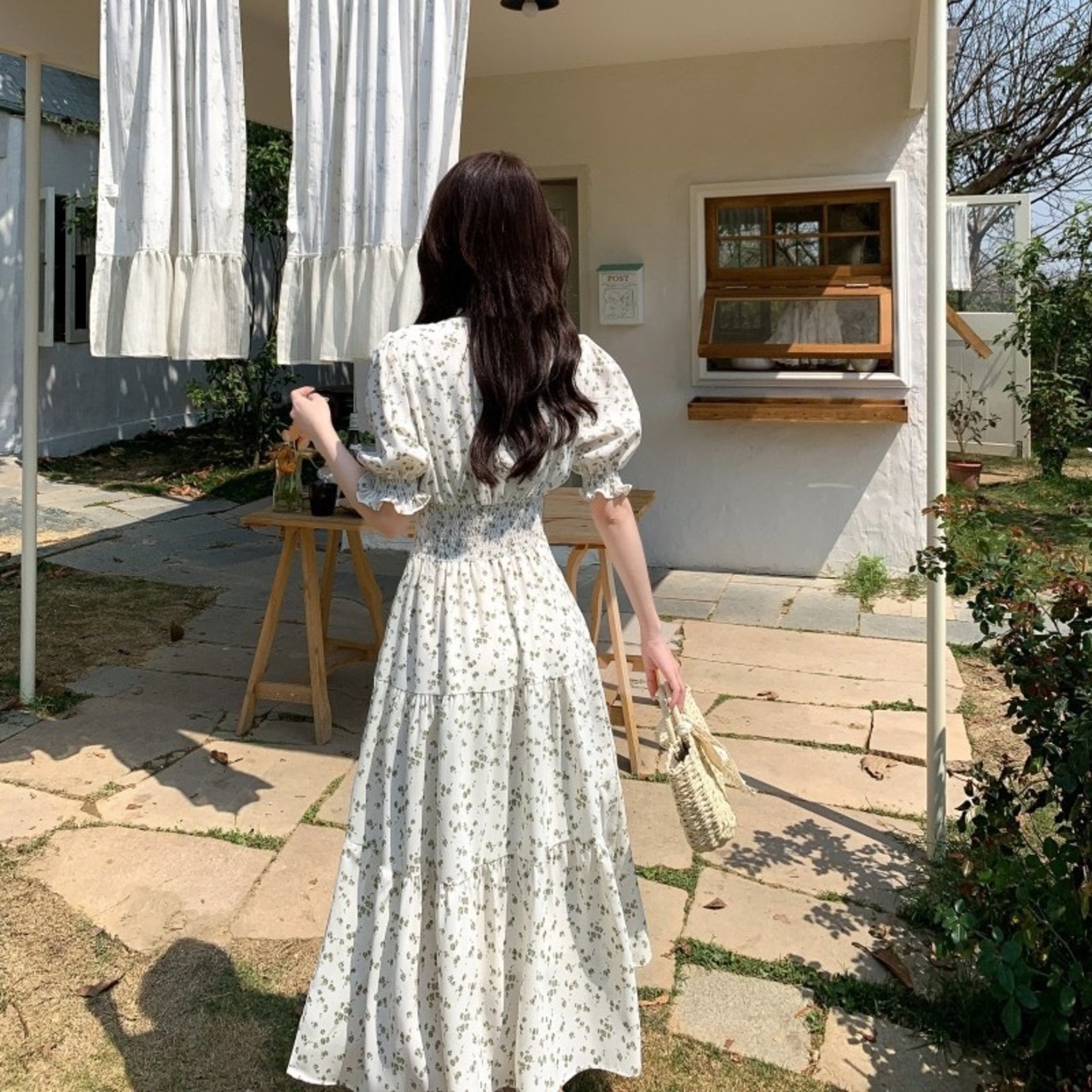 シフォンワンピ シフォンドレス パフスリーブ ロング丈 フレンチ レディース ワンピース フレア ロング マキシ Vネック スリム フェミニン かわいい 大人可愛い きれいめ 上品 おしゃれ こなれ感 ガーリー ラブリー キュート カントリー ナチュラル 花柄 デート お出かけ お泊まり パーティー リゾート 旅行 レストラン 女子会 休日 バカンス ホテル ショッピング 韓国 オルチャン 楽ちん 体型カバー 普段使い 着回し モテ 清楚 トレンド 流行 インスタ映え 定番 S M L XL ホワイト | SPARKJOY レディースファッション