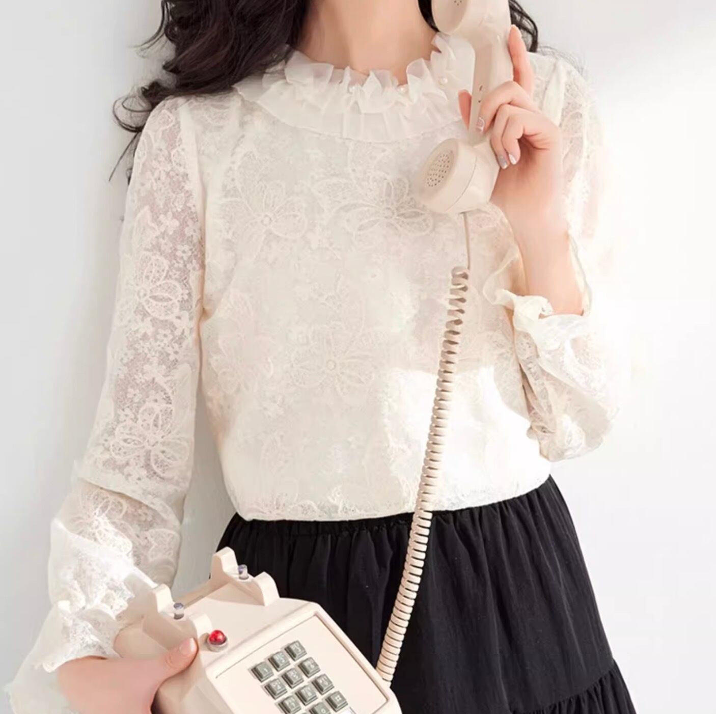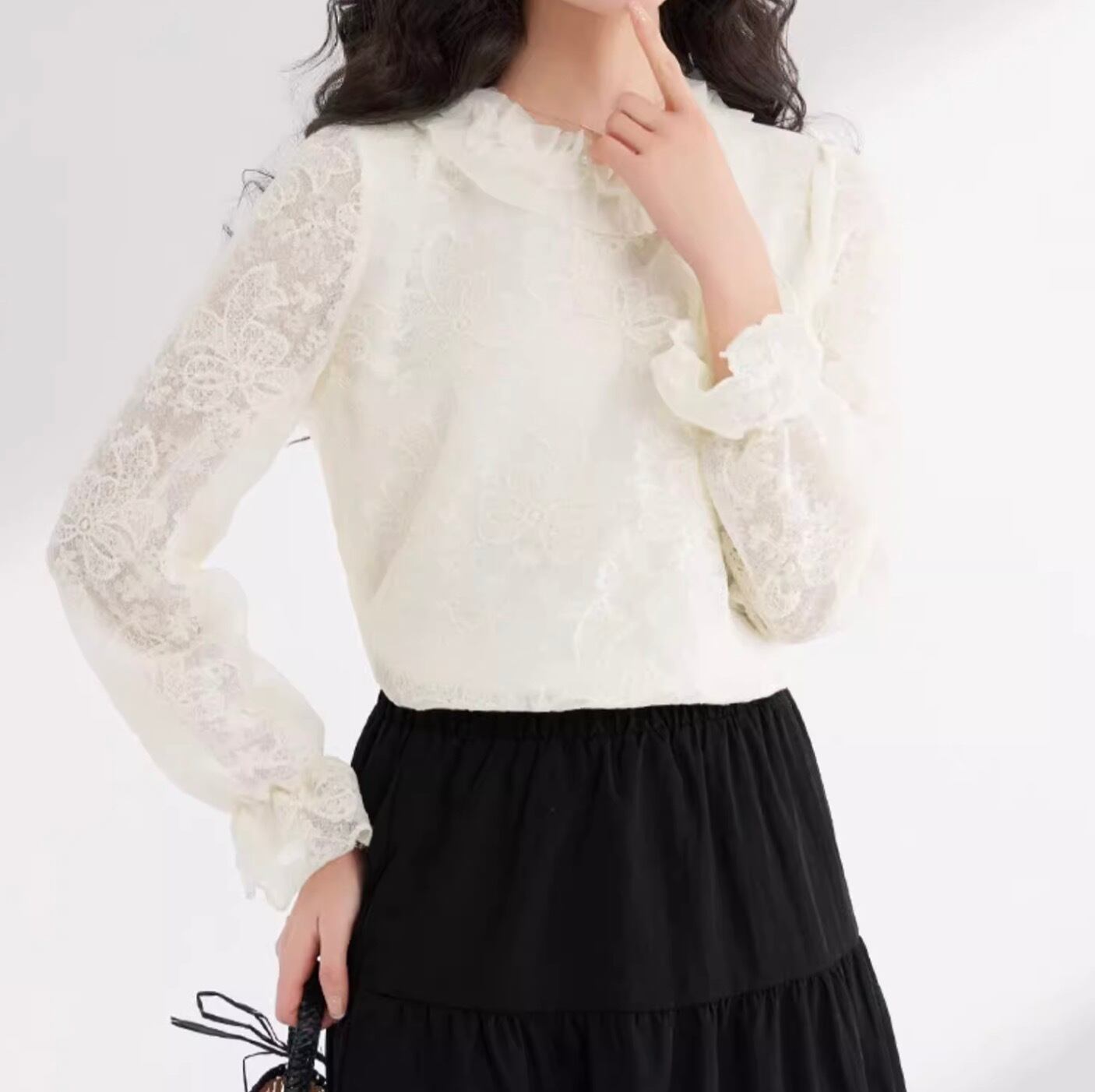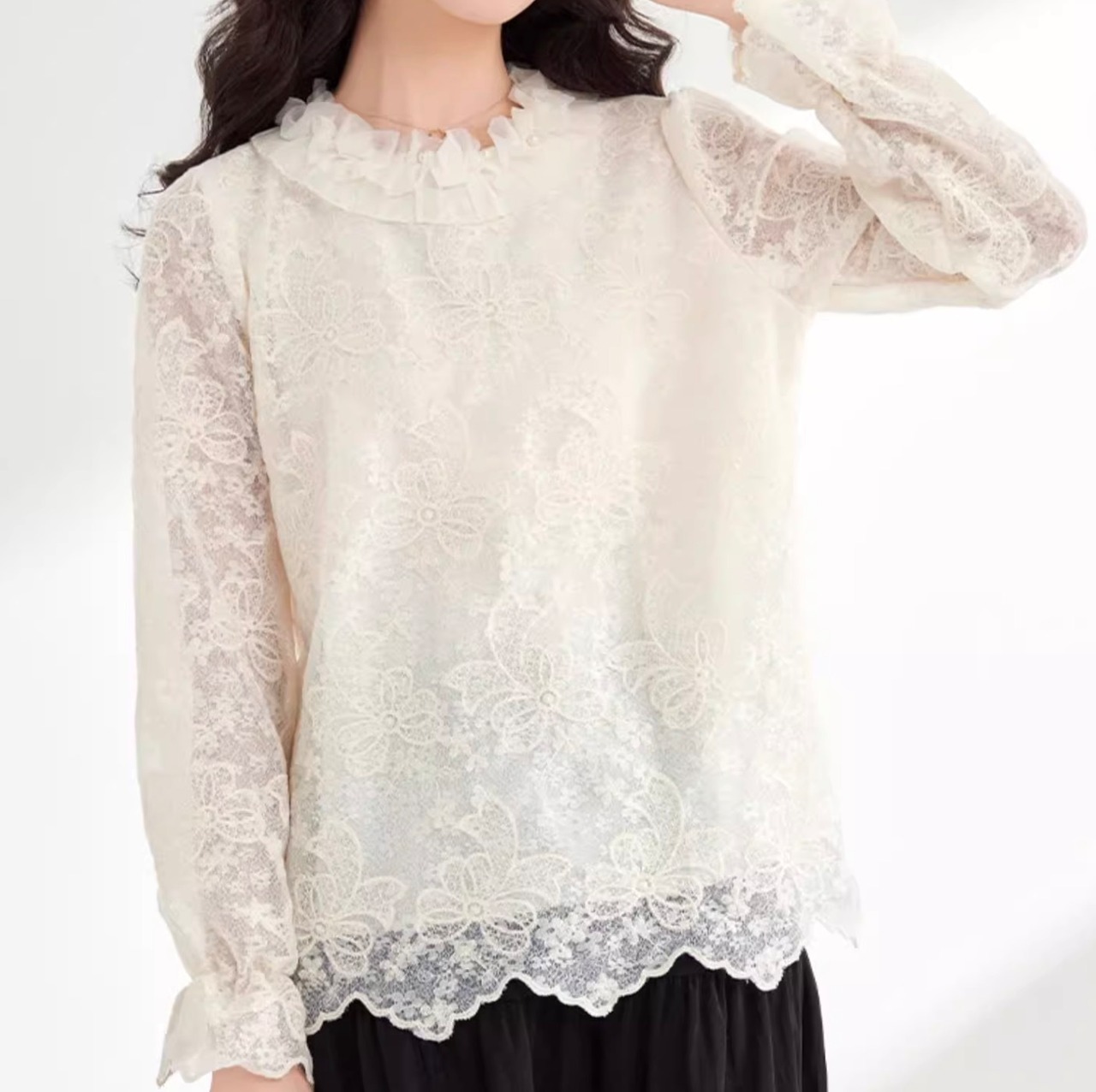レディース トップス ブラウス カットソー デート レース 白トップス ミディアム丈 袖あり 長袖 ボリューム袖 フレアスリーブ 萌袖 ラウンドネック 襟なし スタンドカラー 切り替えデザイン 透け感 かわいい 大人可愛い きれいめ シンプル カジュアル 上品 おしゃれ お洒落 レトロ 大人女子 こなれ感 ラフ ラブリー キュート ガーリー 個性的 クール モード系 エレガント モダン 主役級 存在感 抜け感 無地 お出かけ 女子会 休日 着回し コーデ スタイル モテ 定番 トレンド インスタ映え | SPARKJOY レディースファッション