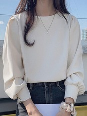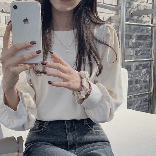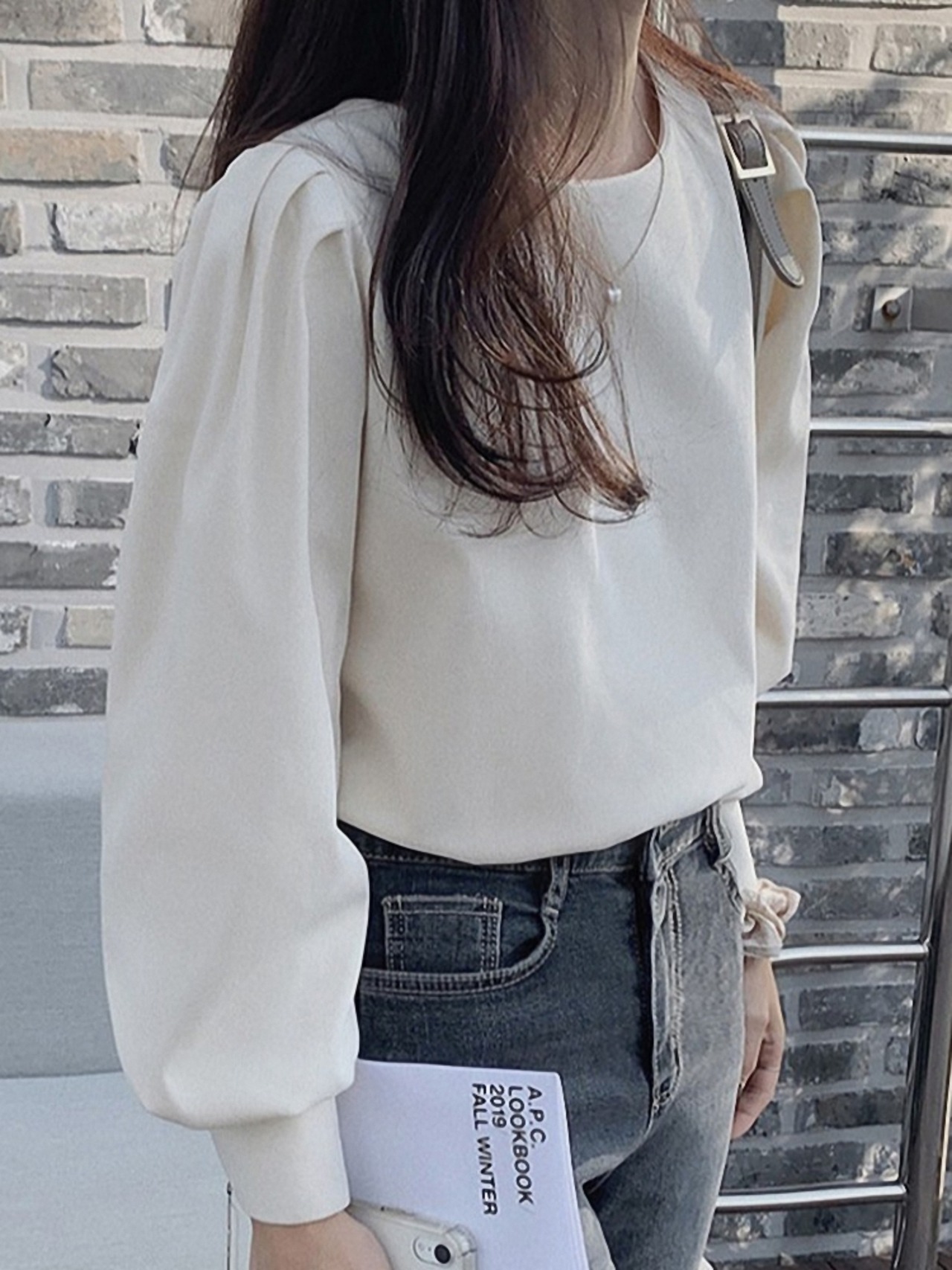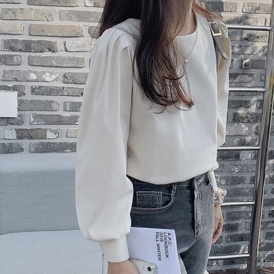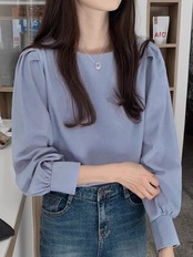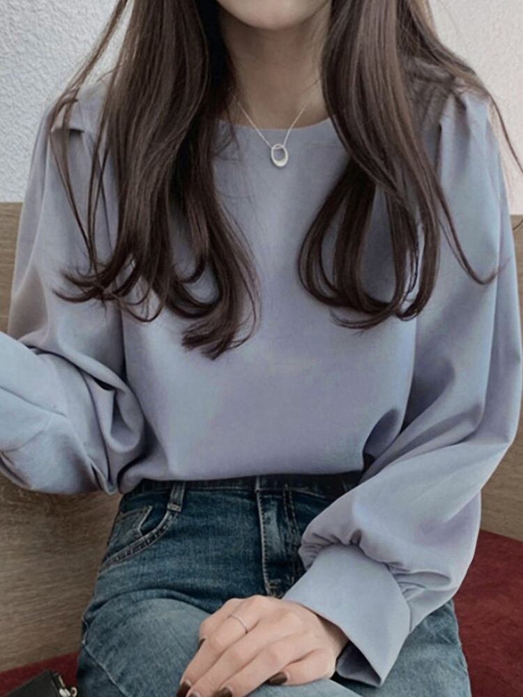 トップス シャツ 長袖 ボリューム袖 ラウンドネック プルオーバー ミディアム丈 かわいい 可愛い 大人可愛い きれいめ シンプル 上品 レトロ おしゃれ かっこいい カジュアル こなれ感 個性的 主役級 存在感 抜け感 春 夏 ベーシック ナチュラル フェミニン 清楚 エレガント 無地 女性用 レディース ママ OL 通勤 オフィス 学生 通学 デート お出かけ お泊まり 女子会 旅行 休日 カフェ ショッピング イベント コンパ 普段使い デイリー 着回し 重ね着 S M L XL トレンド モテ | SPARKJOY レディースファッション