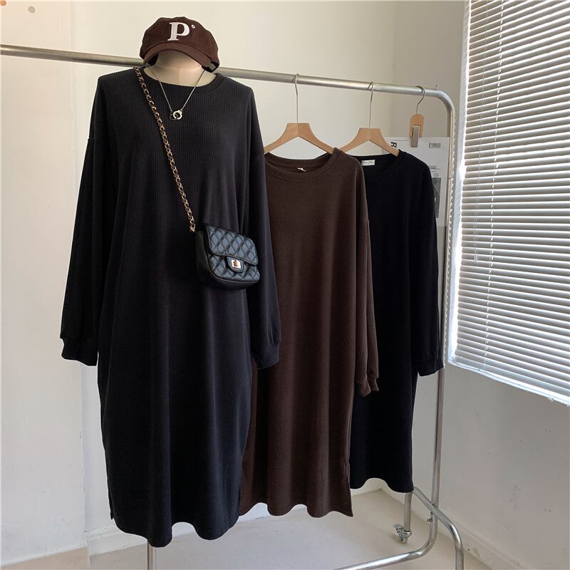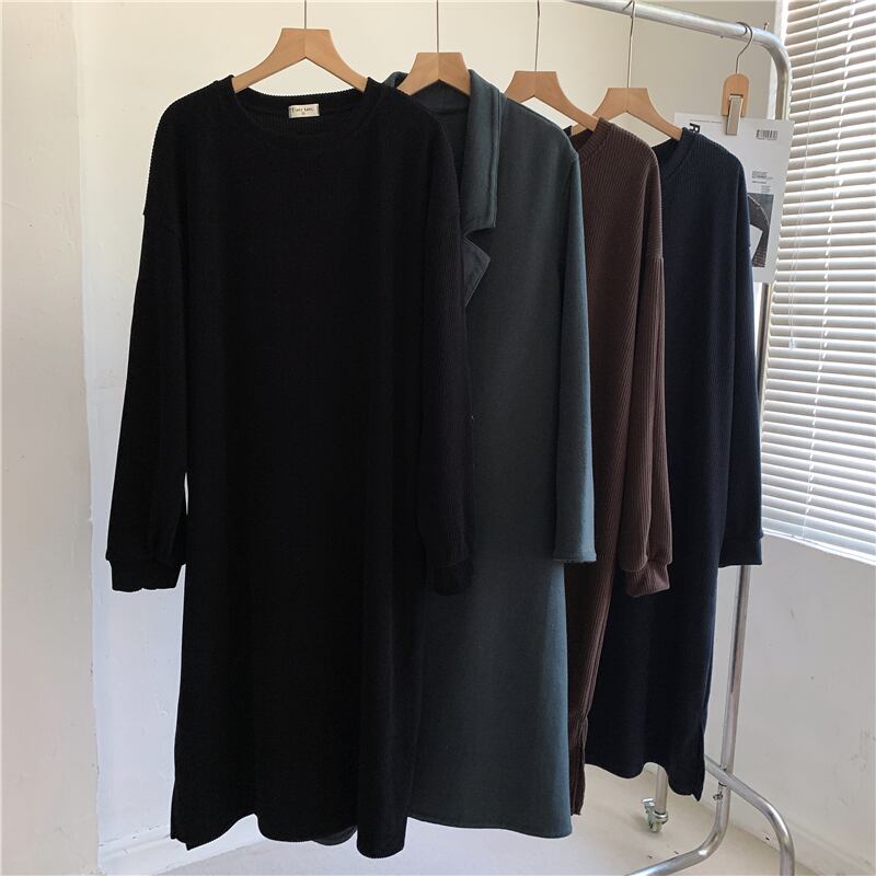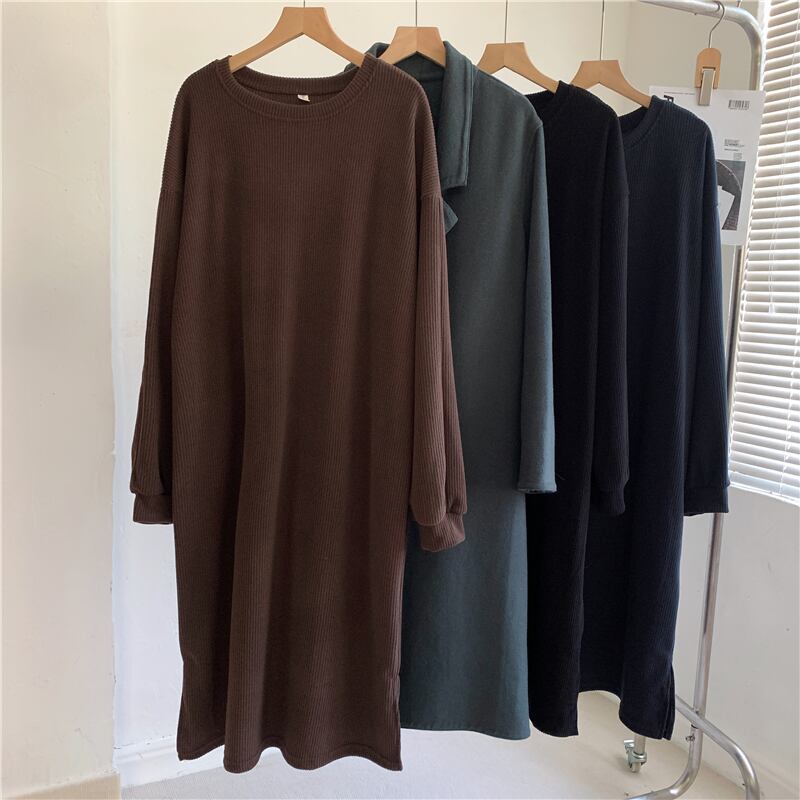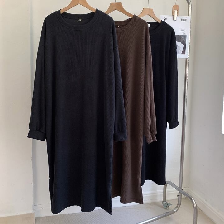 ワンピース ロングワンピース 長袖 ラウンドネック サイドスリット ロング丈 かわいい 大人可愛い きれいめ シンプル 上品 おしゃれ レトロ カジュアル こなれ感 個性的 主役級存在感 ラフ 抜け感 秋 冬 ベーシック ナチュラル キュート 無地 女性用 レディース ママ マタニティ OL 通勤 オフィス 学生 通学 デート お出かけ お泊まり 女子会 旅行 リゾート 休日 カフェ ショッピング コンパ イベント 普段使い デイリー 着回し 重ね着 ワンサイズ トレンド モテ ゆったり 楽ちん | SPARKJOY レディースファッション