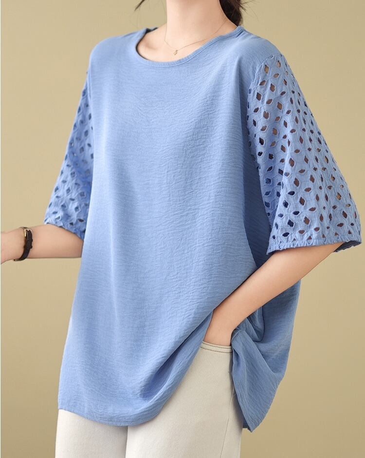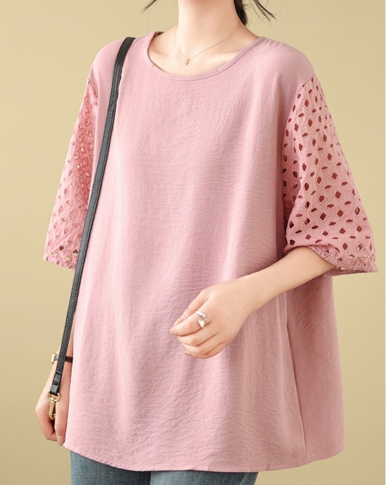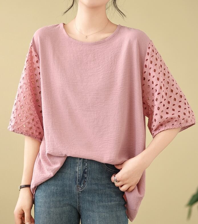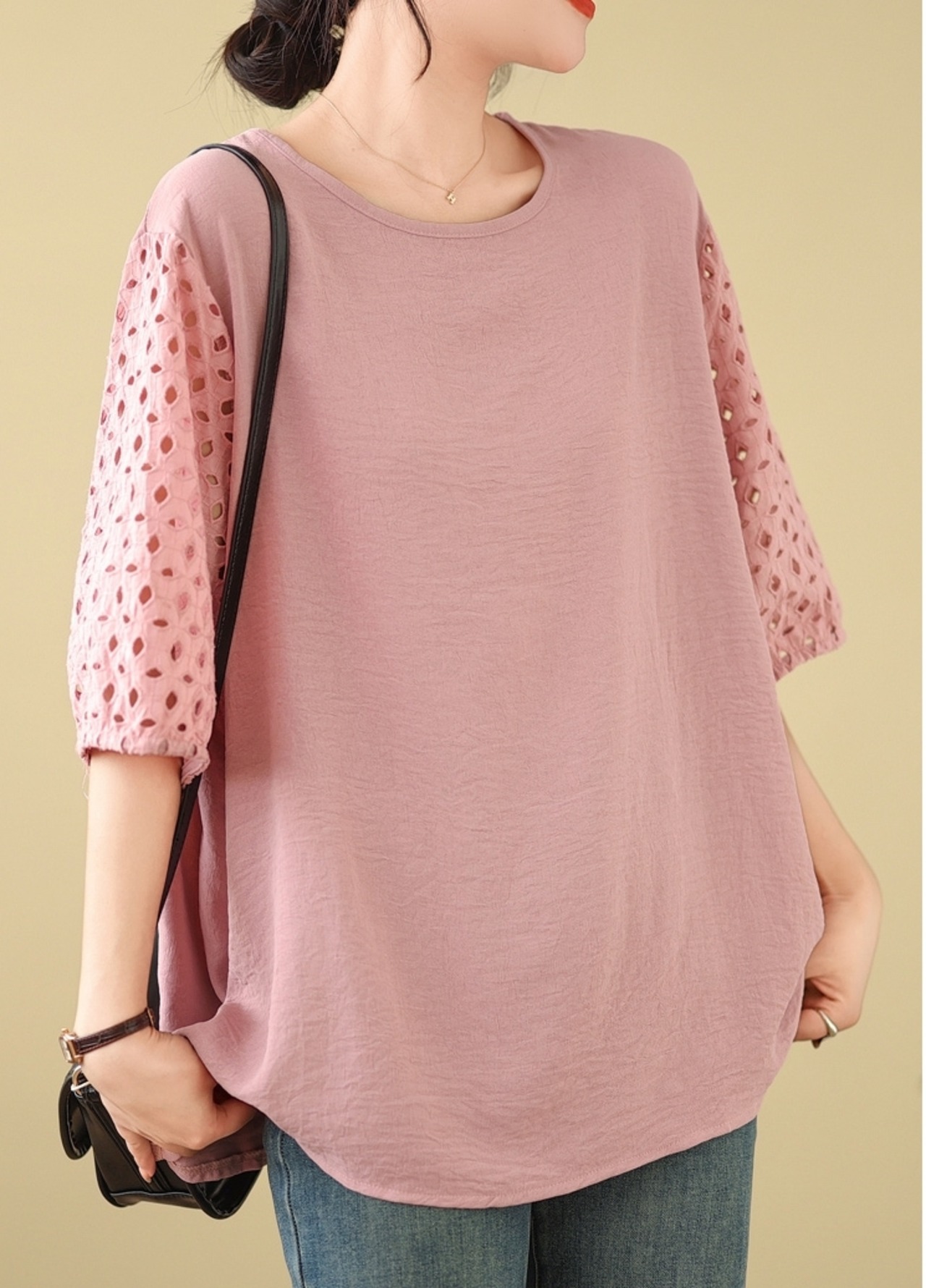 トップス カットソー 5分袖 ラウンドネック プルオーバー ミディアム丈 袖コンシャス かわいい 可愛い 大人可愛い きれいめ シンプル 上品 レトロ おしゃれ かっこいい カジュアル こなれ感 ルーズ 個性的 主役級 存在感 抜け感 春 夏 ベーシック ナチュラル クール 無地 女性用 レディース ママ OL 通勤 オフィス 学生 通学 デート お出かけ お泊まり 女子会 旅行 休日 カフェ ショッピング 会議 MTG イベント コンパ 普段使い デイリー 着回し 重ね着 L XL トレンド モテ | SPARKJOY レディースファッション