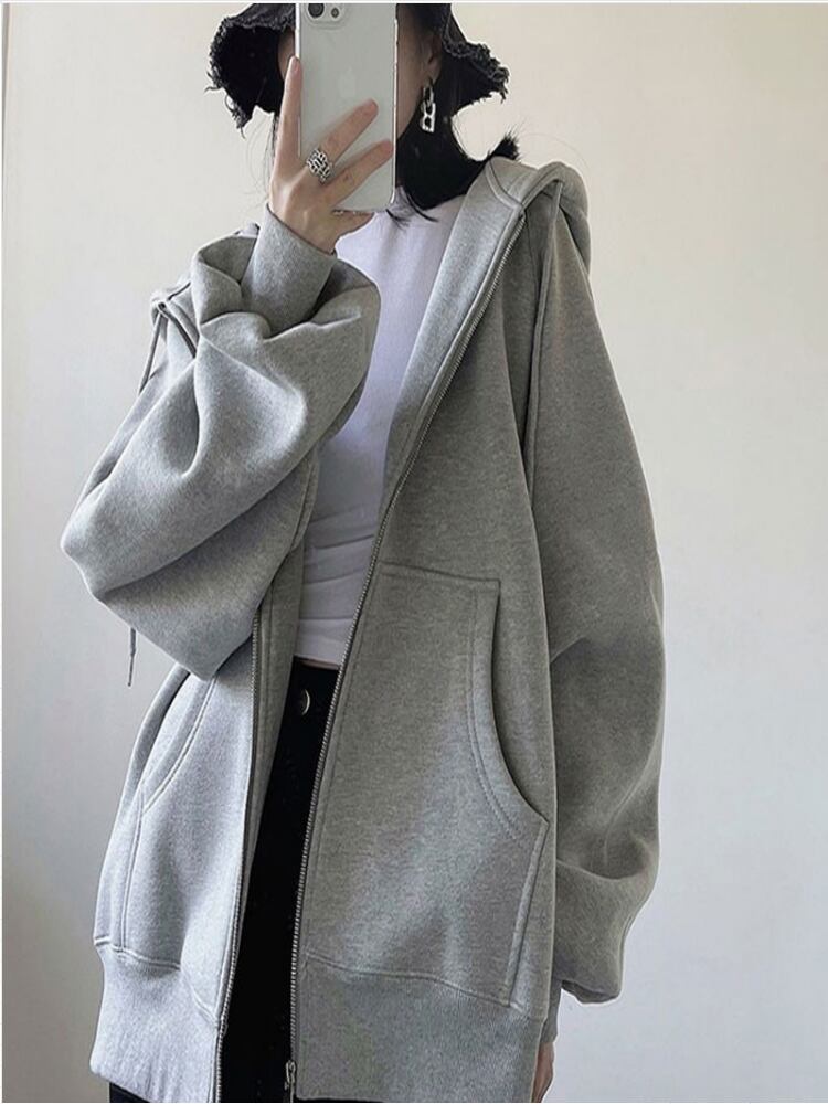 トップス フーディー パーカー 長袖 前開き ファスナー ポケット ミディアム丈 かわいい 可愛い 大人可愛い きれいめ シンプル 上品 レトロ おしゃれ かっこいい カジュアル レトロ こなれ感 個性的 ルーズ 主役級 存在感 抜け感 春 秋 ベーシック ナチュラル メンズライク 無地 女性用 レディース OL 通勤 オフィス 学生 通学 デート お出かけ お泊まり 女子会 旅行 休日 カフェ ショッピング イベント コンパ 普段使い デイリー 着回し 重ね着 S M L XL 2XL オーバーサイズ | SPARKJOY レディースファッション