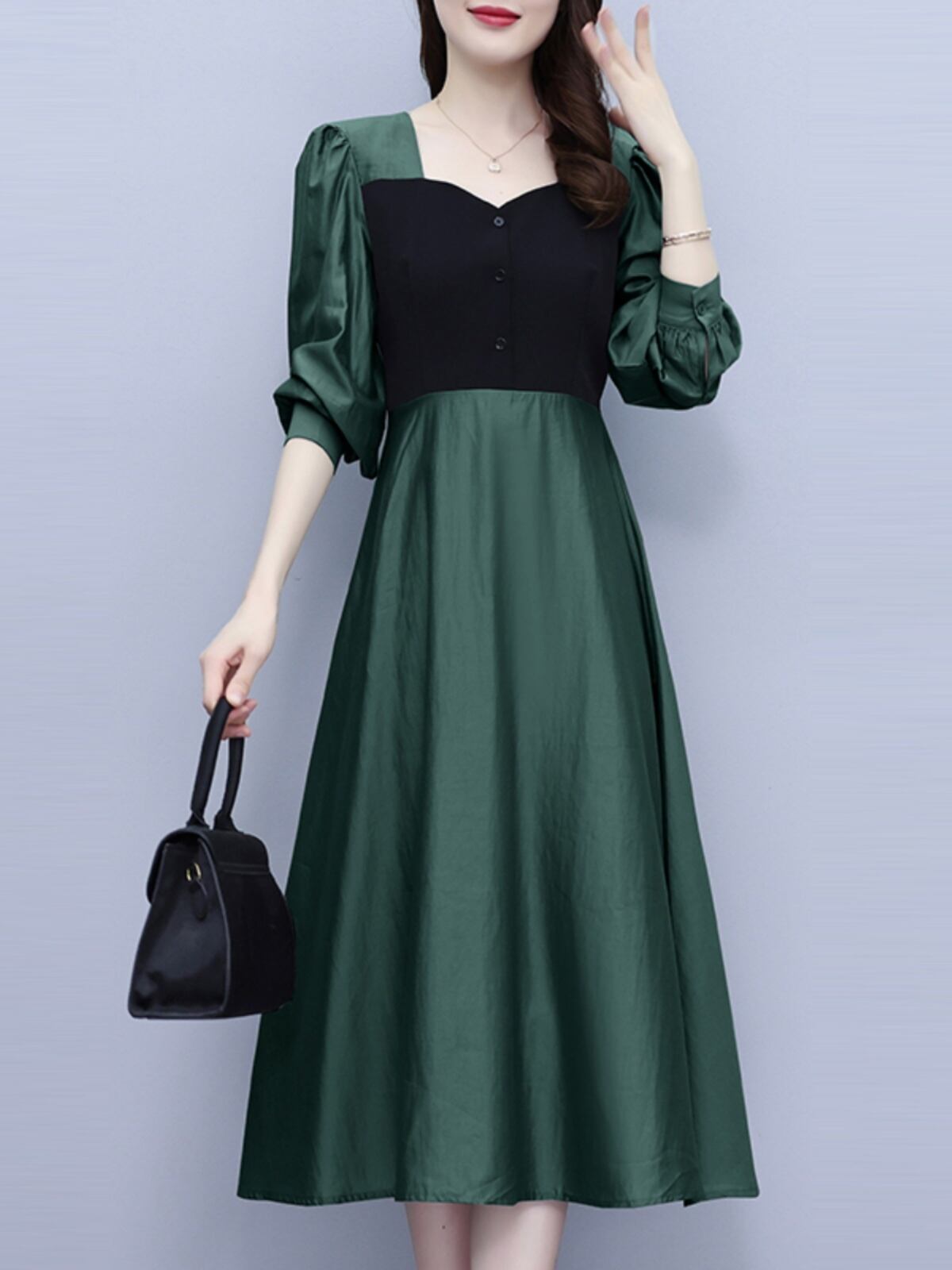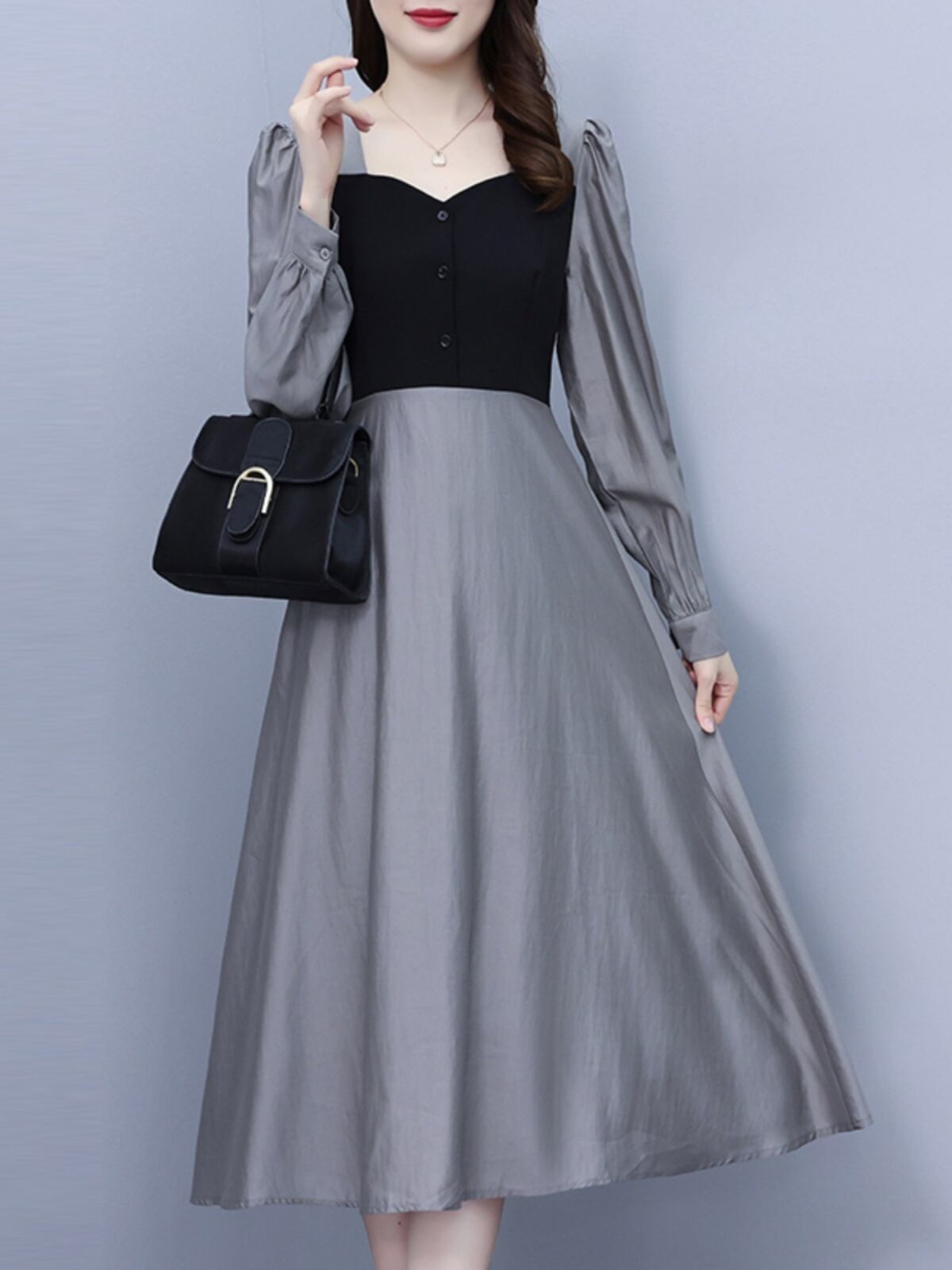 ワンピース ミディアム丈ワンピース 長袖 ハートネック ハイウエスト 切り替えデザイン 異素材ミックス かわいい 大人可愛い きれいめ シンプル 上品 おしゃれ レトロ カジュアル こなれ感 個性的 主役級存在感 抜け感 オールシーズン ベーシック ナチュラル エレガント 無地 女性用 レディース ママ デート お出かけ お泊まり 女子会 旅行 リゾート 休日 カフェ ショッピング コンパ イベント パーティー 二次会 ディナー 普段使い デイリー 着回し 重ね着 L XL 2XL 3XL 4XL 5XL | SPARKJOY レディースファッション