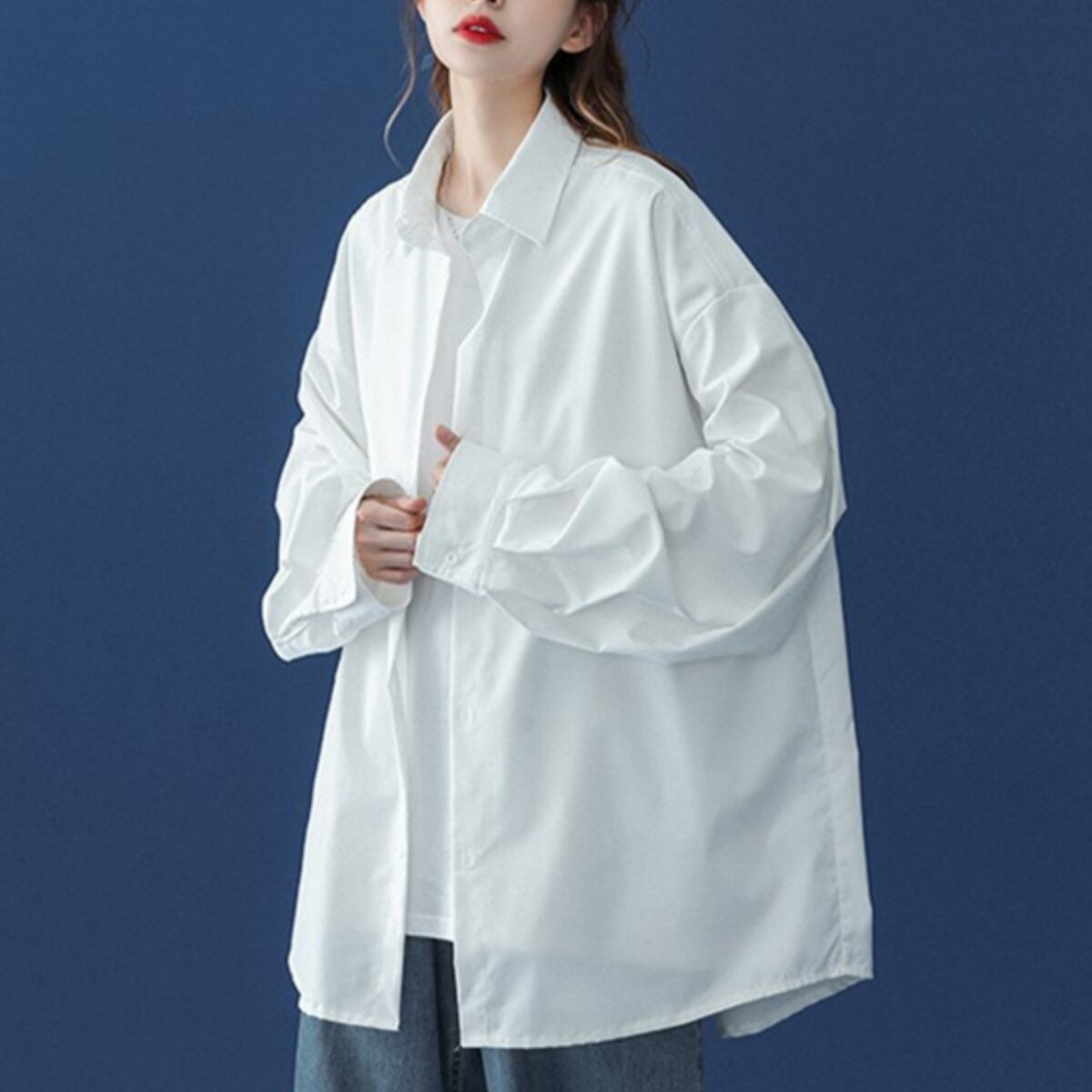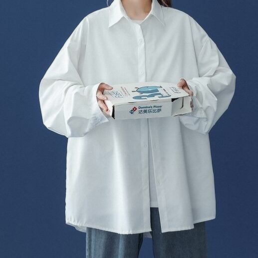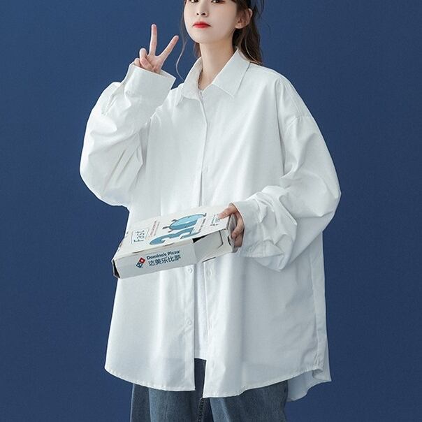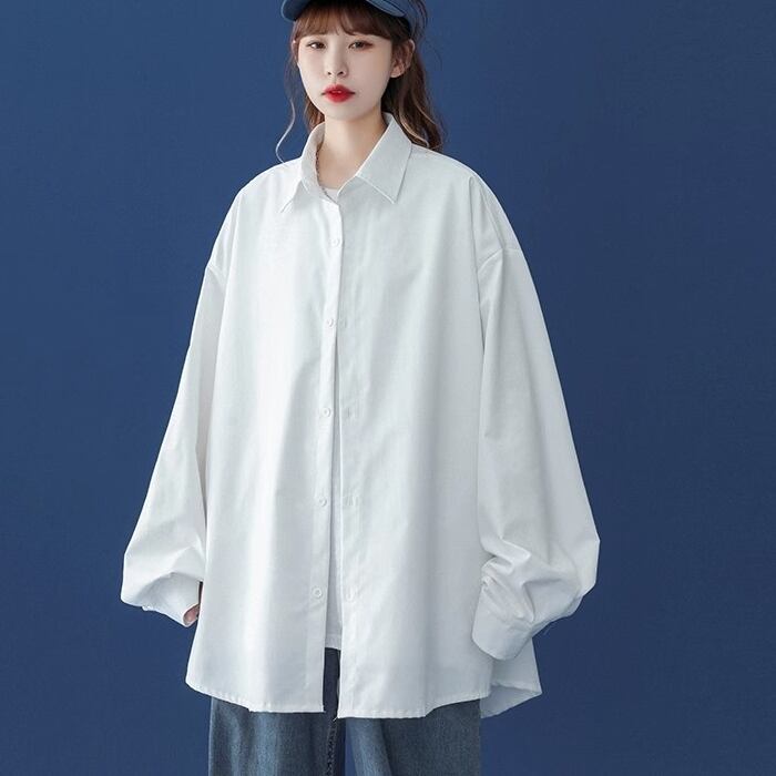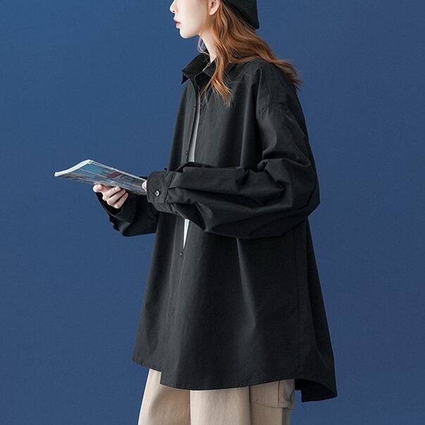 トップス シャツ 長袖 襟付き 前開き ボタン ミディアム丈 かわいい 可愛い 大人可愛い きれいめ シンプル 上品 レトロ おしゃれ かっこいい カジュアル こなれ感 ルーズ 個性的 主役級 存在感 抜け感 春 夏 秋 ベーシック ナチュラル メンズライク 無地 女性用 レディース ママ OL 通勤 オフィス 学生 通学 デート お出かけ お泊まり 女子会 旅行 休日 アウトドア カフェ ショッピング MTG イベント コンパ 普段使い デイリー 着回し 重ね着 M L XL 2XL オーバーサイズ | SPARKJOY レディースファッション
