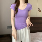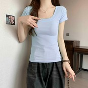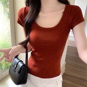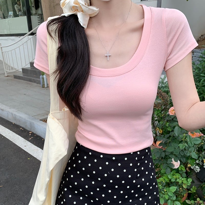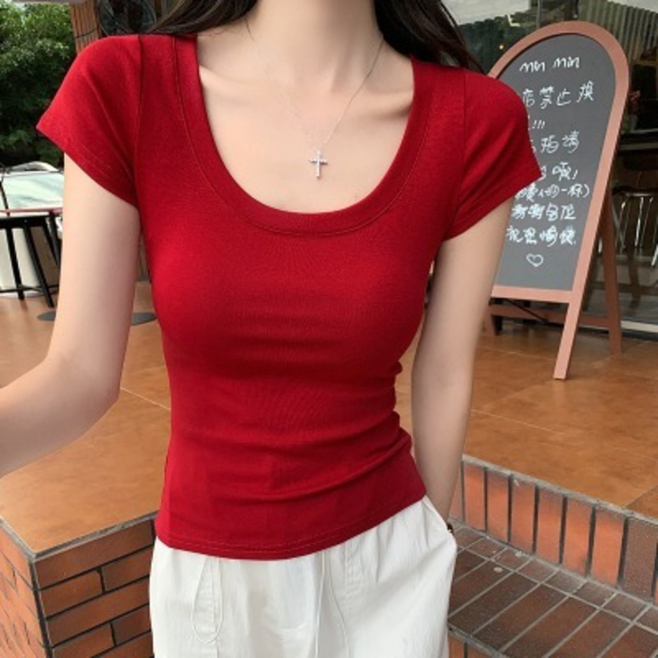 トップス カットソー 半袖 Uネック プルオーバー ミディアム丈 かわいい 可愛い 大人可愛い きれいめ シンプル 上品 レトロ おしゃれ かっこいい カジュアル レトロ こなれ感 個性的 主役級 存在感 抜け感 春 夏 ベーシック ナチュラル メンズライク 無地 女性用 レディース OL 通勤 オフィス 学生 通学 デート お出かけ お泊まり 女子会 旅行 休日 アウトドア カフェ ショッピング イベント コンパ 普段使い デイリー 着回し 重ね着 S M L XL 定番アイテム カラーバリエーション | SPARKJOY レディースファッション