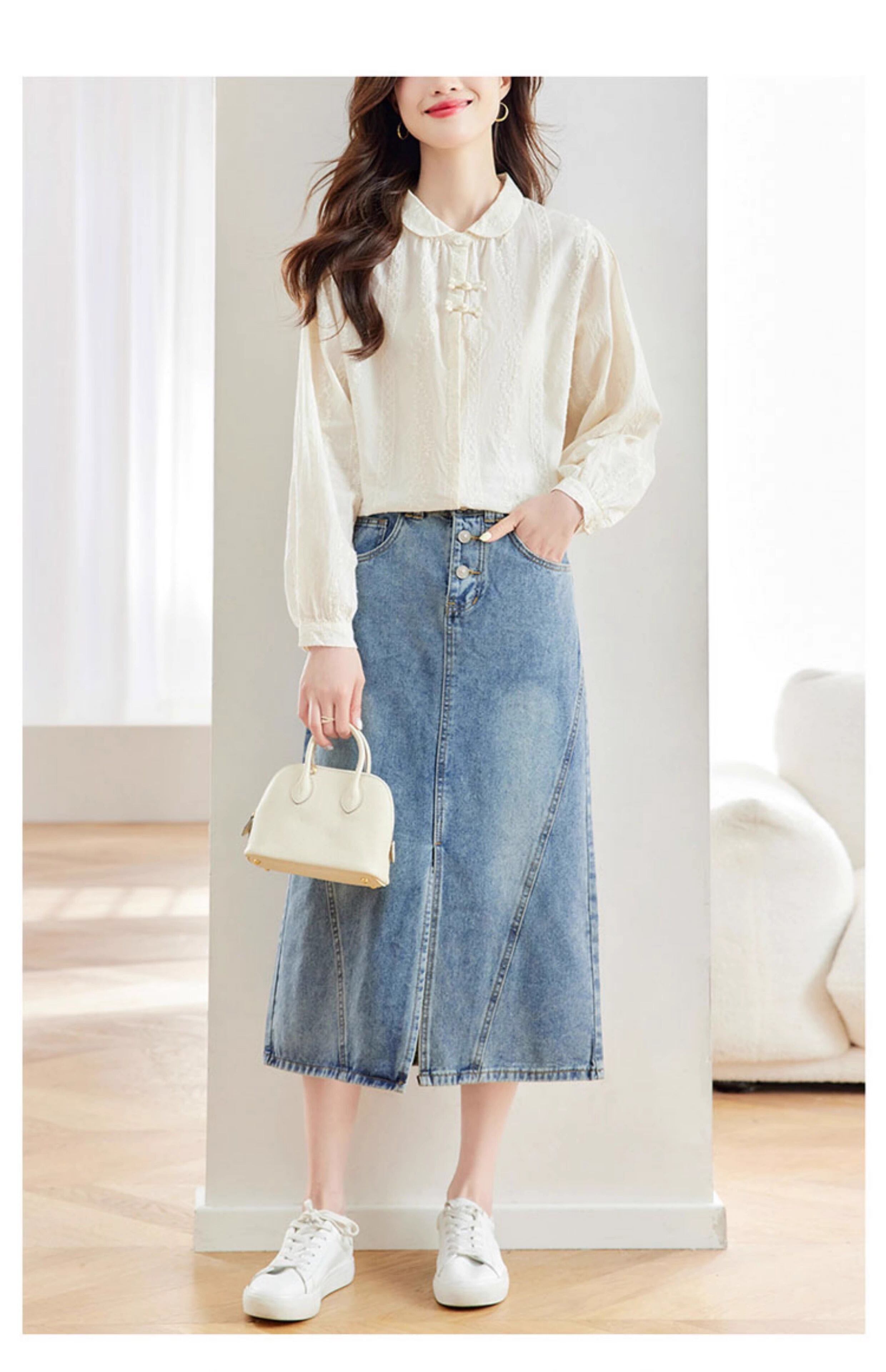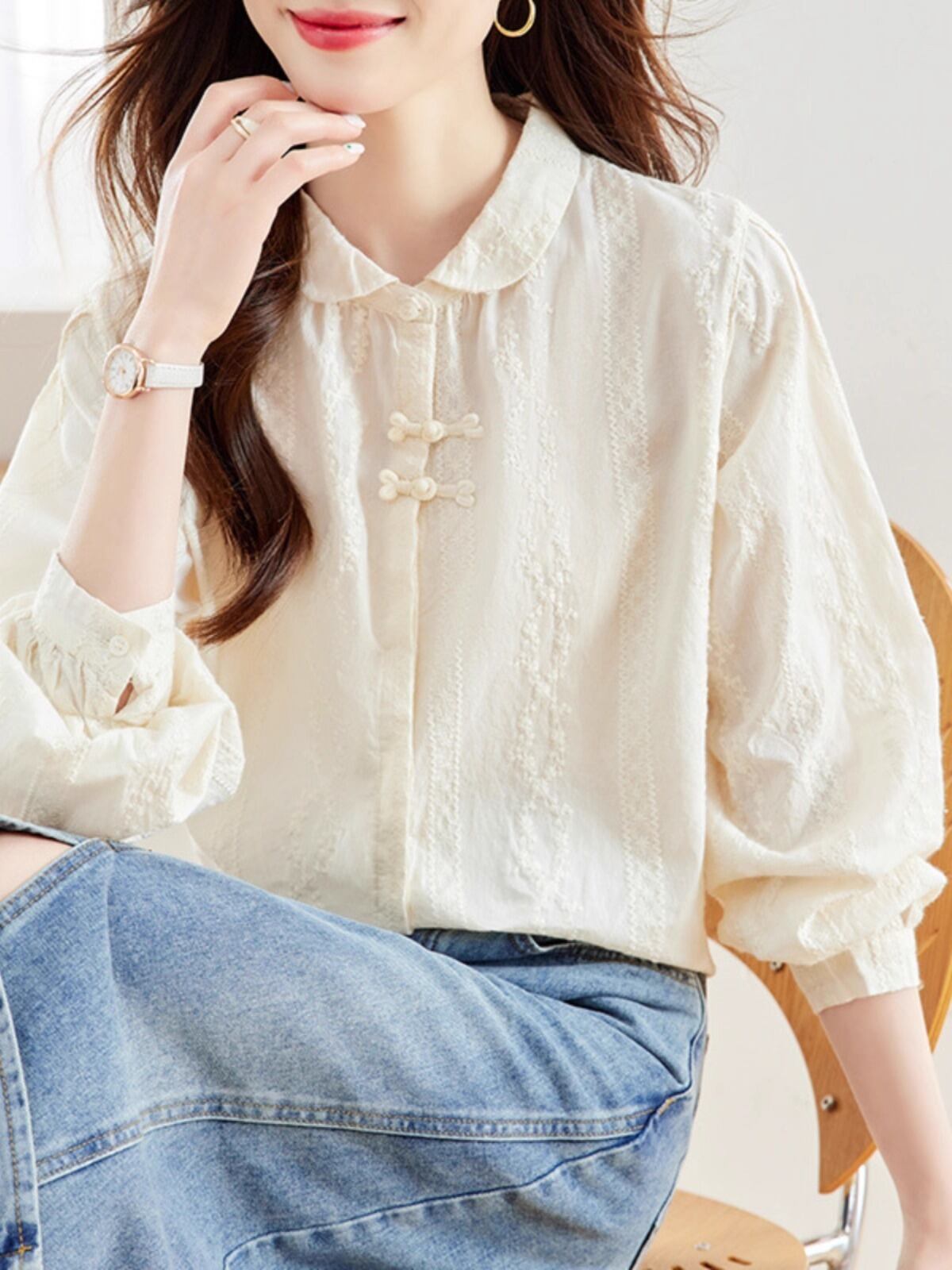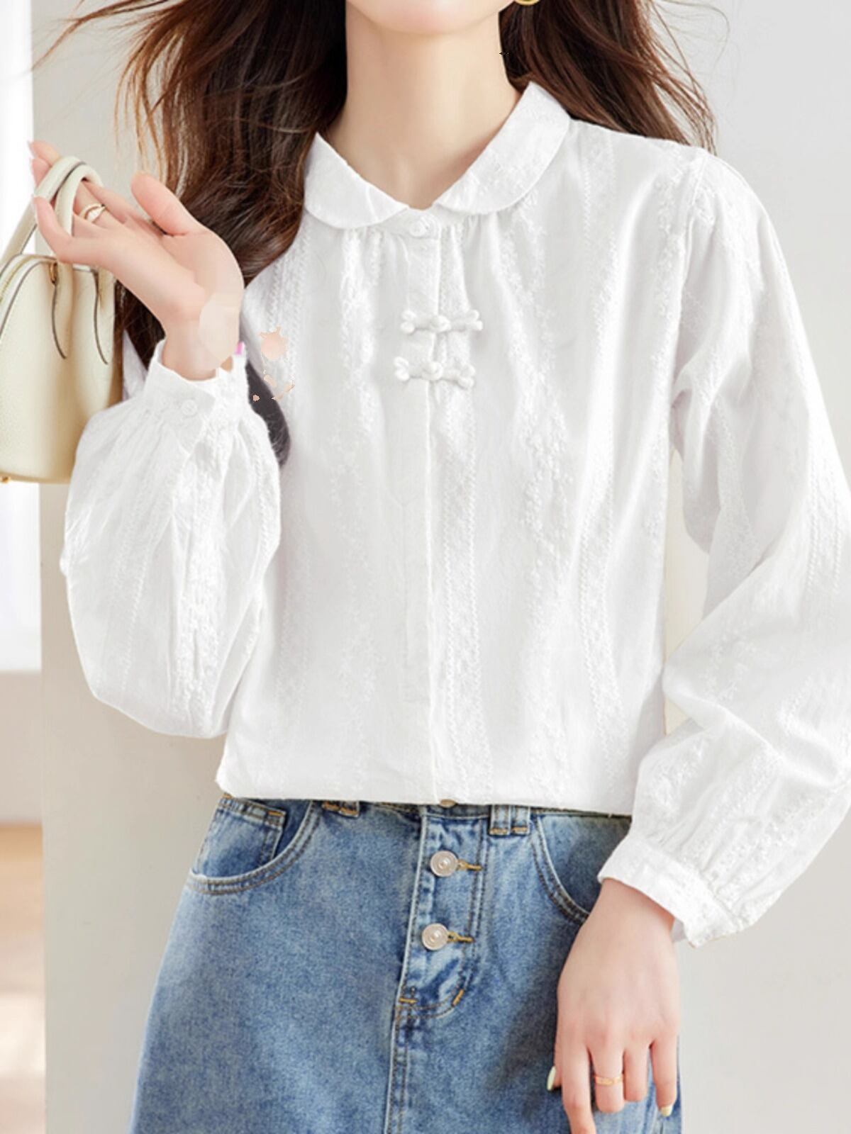 大人可愛いレディーストップスのご紹介です!前開きのデザインで、Uネックの襟付きで、フェミニンな雰囲気を演出。レースや刺繍のディテールが美しく、透け感のある薄手綿素材で春夏のお出かけにぴったりです。カジュアルスタイルにキュートなアクセントを加え、女子会やデートにも最適なアイテムです。