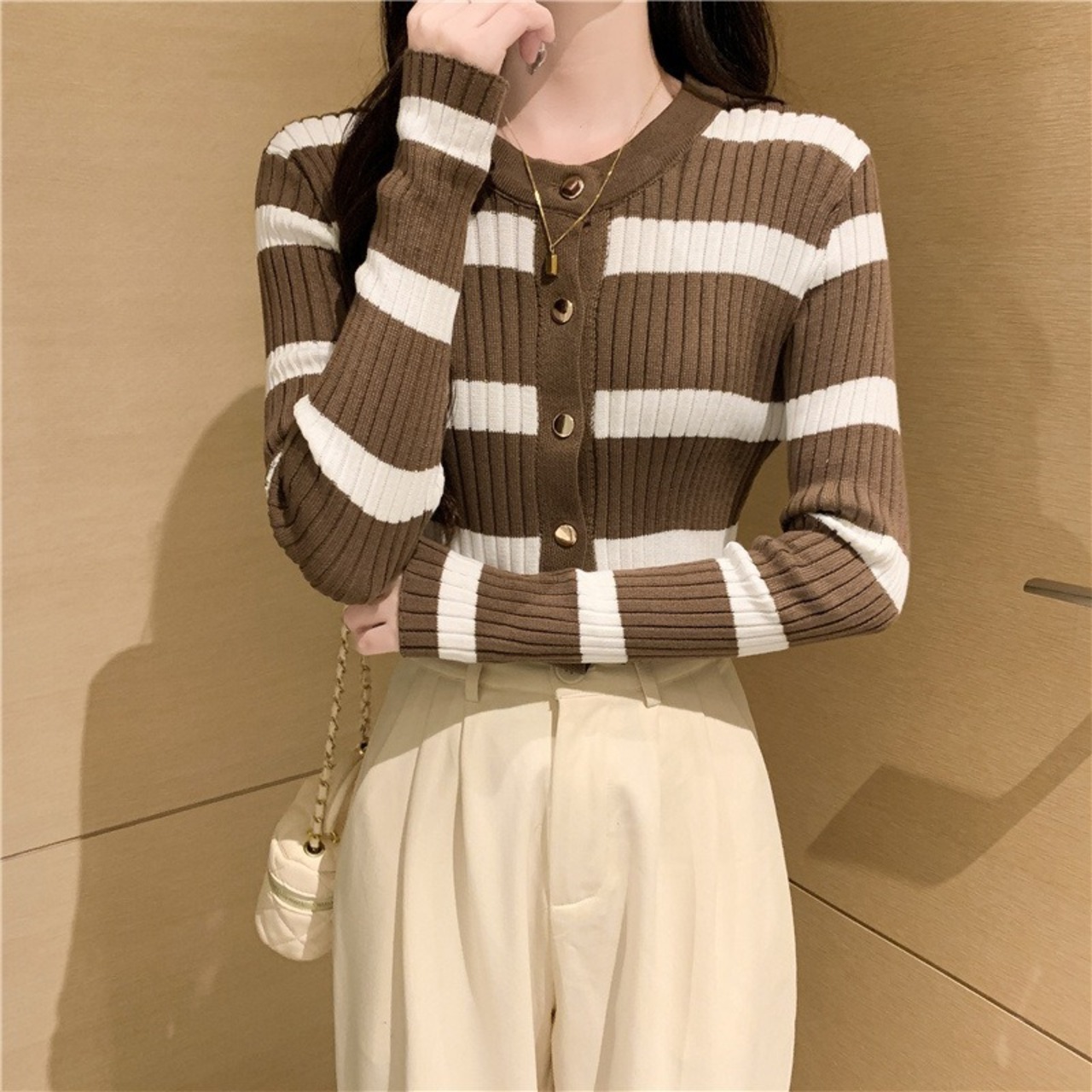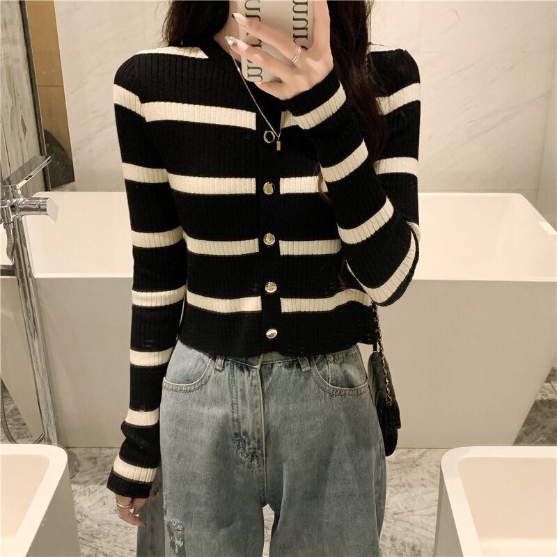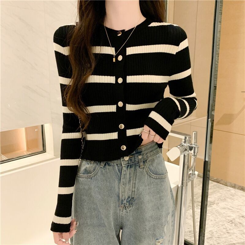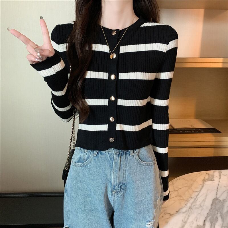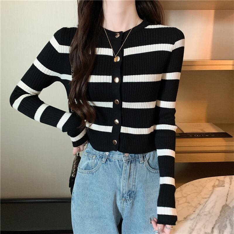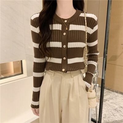 レディース トップス ニット セーター カーディガン アウター 前開き 長袖 ラウンドネック 襟なし ボタン かわいい 大人可愛い きれいめ シンプル カジュアル 上品 おしゃれ こなれ感 エレガント キュート ナチュラル ボーダー 秋 冬 通勤 学生 学校 通学 デート お出かけ イベント リゾート 旅行 レストラン 女子会 休日 ガーデン ショッピング カフェ コーデ 楽ちん 普段使い 着回し フリーサイズ 白 ホワイト 黒 ブラック 茶色 ブラウン | SPARKJOY レディースファッション