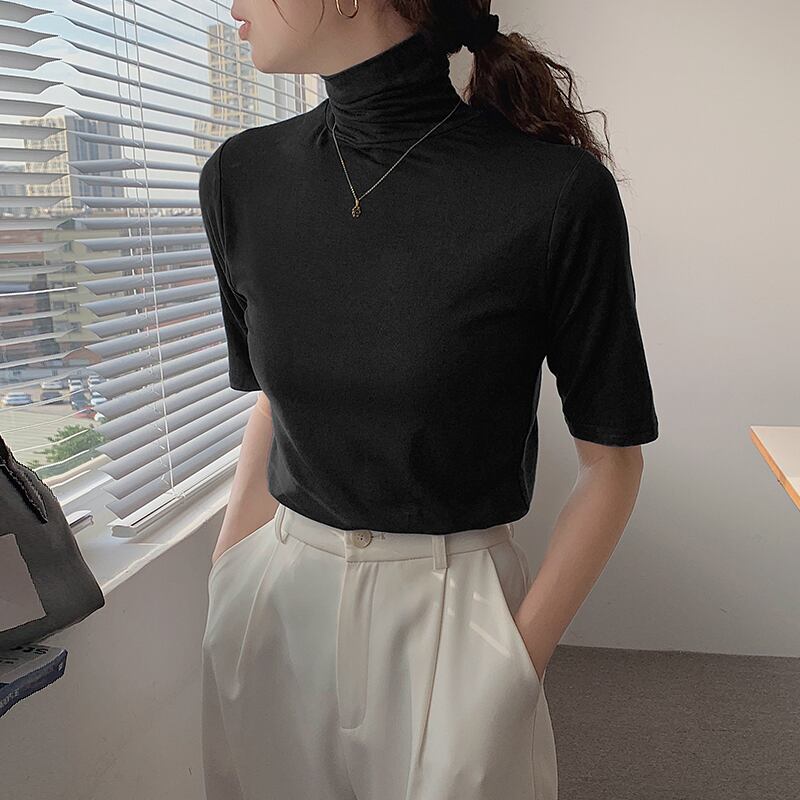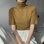 トップス カットソー 5分袖 タートルネック プルオーバー ミディアム丈 かわいい 可愛い 大人可愛い きれいめ シンプル 上品 レトロ おしゃれ かっこいい カジュアル レトロ こなれ感 個性的 主役級 存在感 抜け感 春 夏 ベーシック ナチュラル クール 無地 女性用 レディース OL 通勤 オフィス 学生 通学 デート お出かけ お泊まり 女子会 旅行 休日 カフェ ショッピング イベント コンパ 普段使い デイリー 着回し 重ね着 S M L XL トレンド モテ カラーバリエーション | SPARKJOY レディースファッション