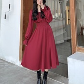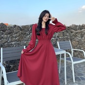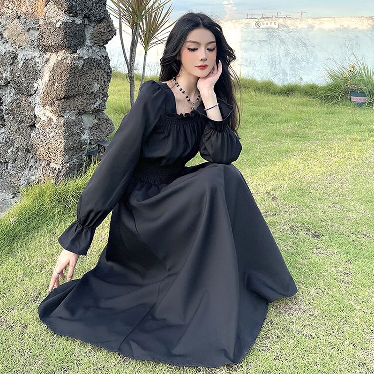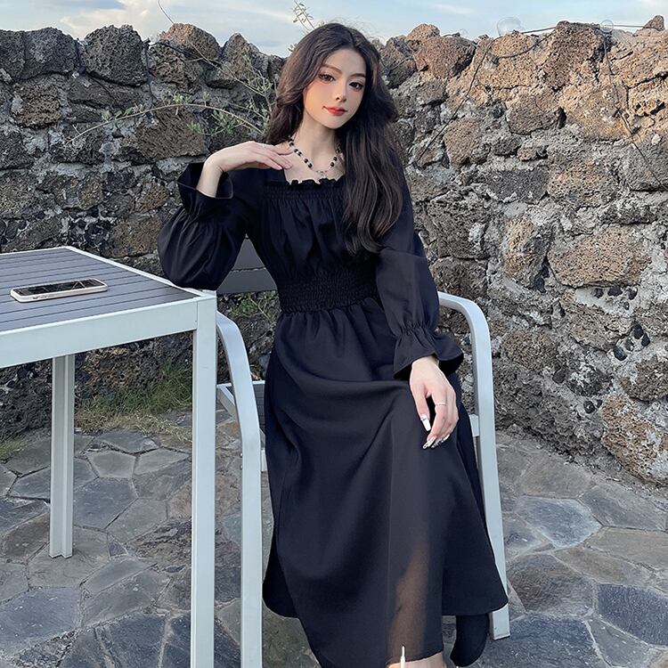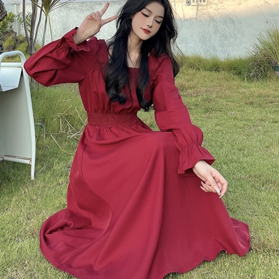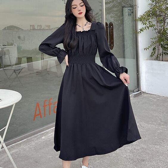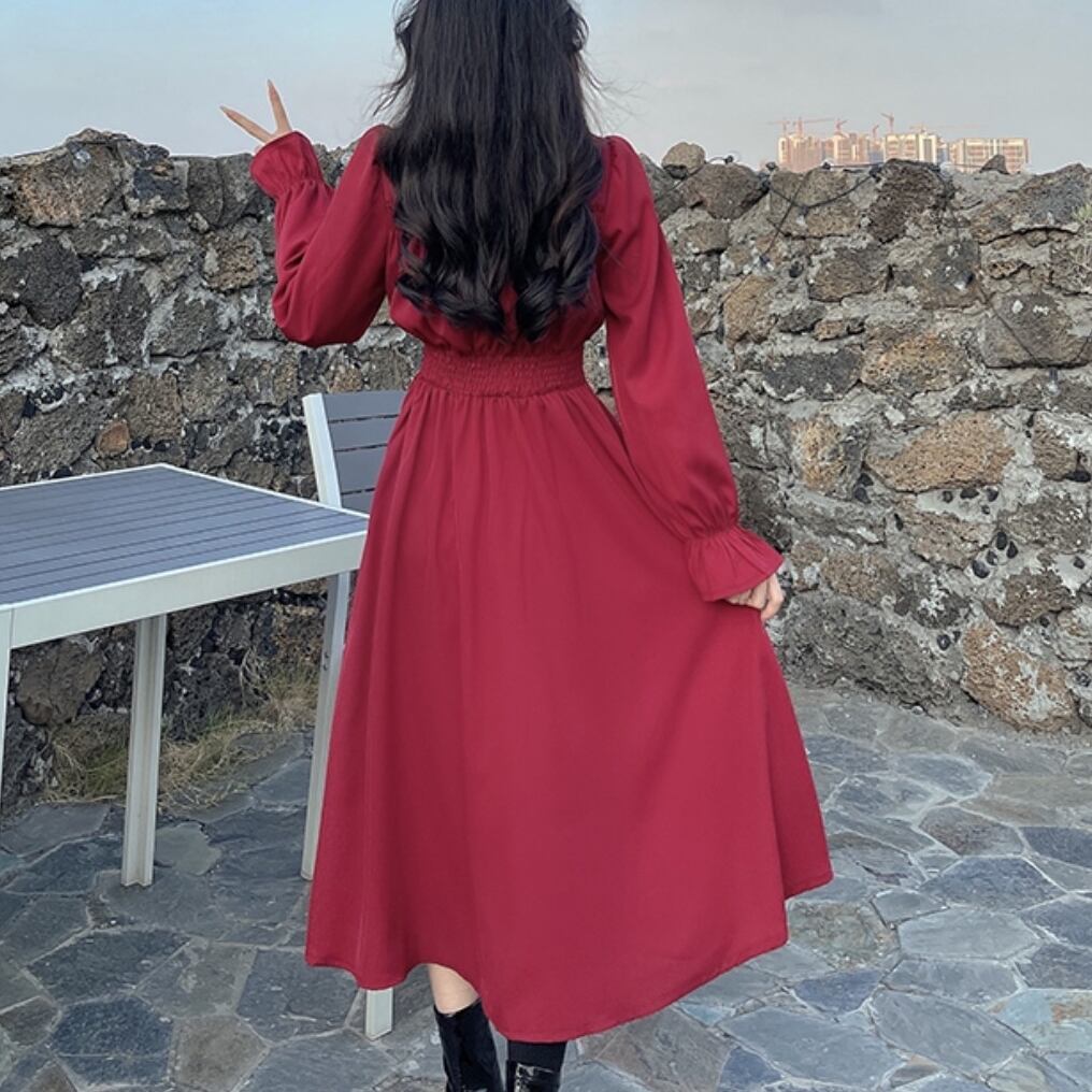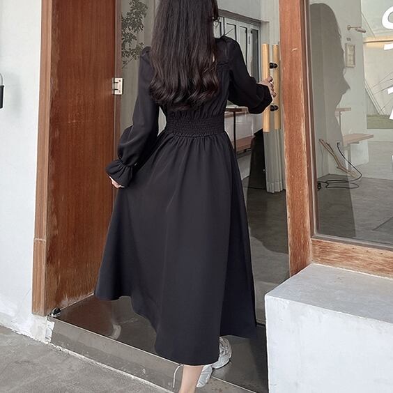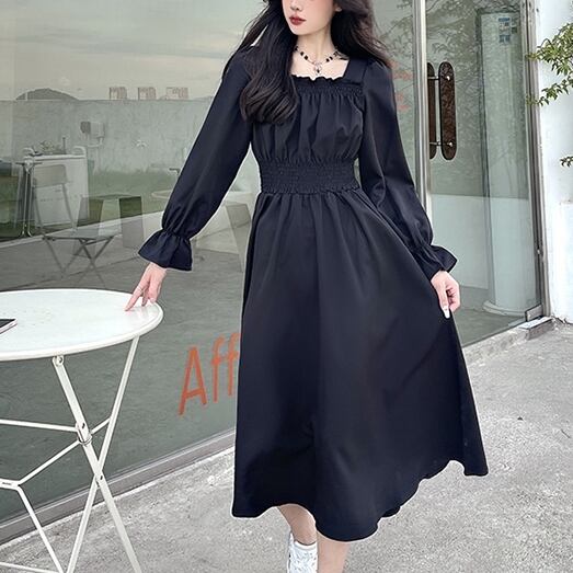 ワンピース ミモレ丈ワンピース 長袖 パフスリーブ スクエアネック シャーリング ウエストマーク ハイウエスト ミモレ丈 かわいい 大人可愛い きれいめ シンプル 上品 おしゃれ レトロ カジュアル こなれ感 個性的 主役級存在感 抜け感 春 秋 ベーシック ナチュラル フェミニン エレガント 無地 女性用 レディース ママ デート お出かけ お泊まり 女子会 旅行 休日 カフェ ショッピング イベント コンパ 普段使い デイリー 着回し 脚長 M L XL 2XL 3XL 4XL トレンド モテ | SPARKJOY レディースファッション