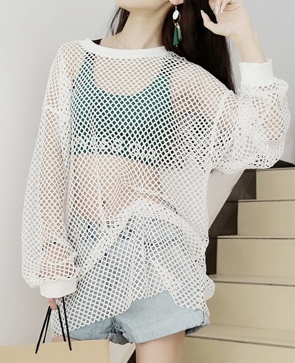 トップス カットソー 長袖 クルーネック メッシュ プルオーバー ミディアム丈 かわいい 可愛い 大人可愛い きれいめ シンプル 上品 レトロ おしゃれ かっこいい カジュアル レトロ ルーズ こなれ感 個性的 主役級 存在感 抜け感 春 夏 ベーシック ナチュラル メンズライク セクシー 女性用 レディース OL 通勤 学生 通学 デート お出かけ お泊まり 女子会 旅行 休日 アウトドア カフェ ショッピング コンパ 普段使い デイリー 着回し 重ね着 S M L XL 2XL 3XL 4XL 5XL | SPARKJOY レディースファッション