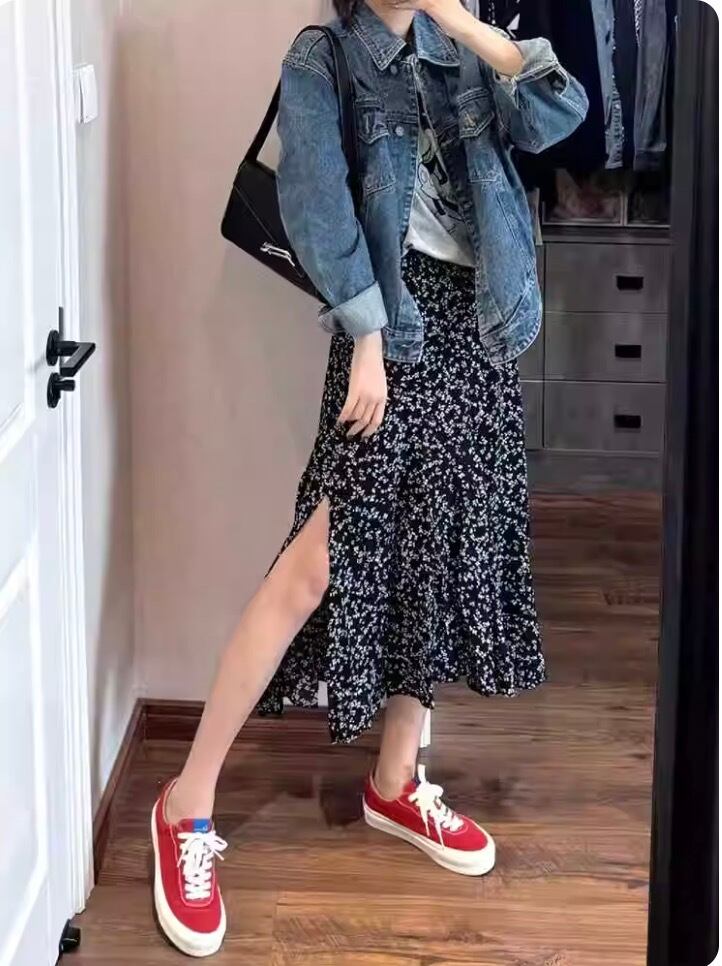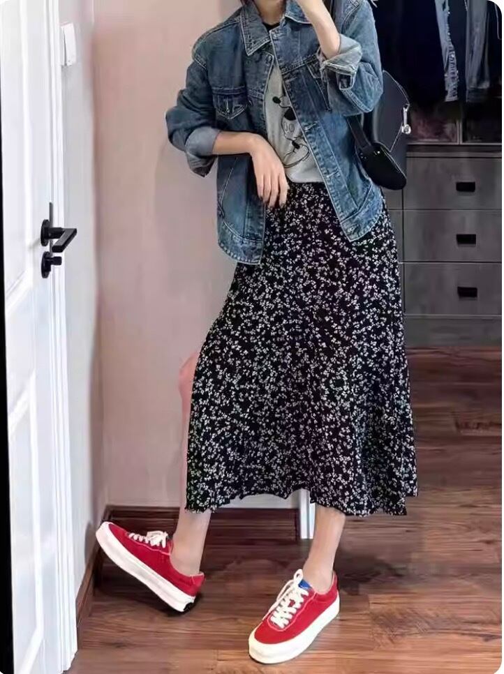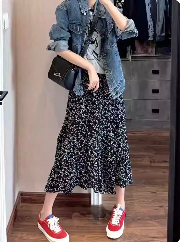 大人可愛い印象を与えるミモレ丈スカートが登場!流行のフレアAラインシルエットに切り替えデザインとサイドスリットを取り入れ、スタイリッシュさと歩きやすさを兼ね備えています。花柄のデザインが加わり、華やかさも演出。シンプルなトップスと合わせても、ジャケットを羽織っても、大人女子らしいこなれ感をプラスします。お出かけやデート、女子会などのシーンでのコーディネートにぴったりです。