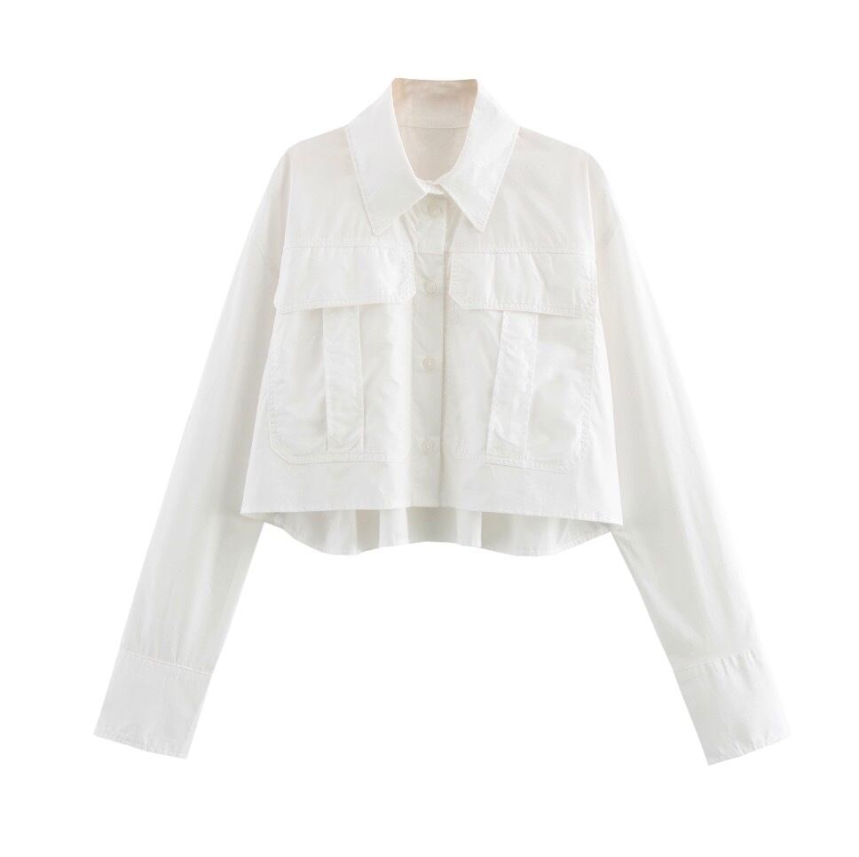 レディース トップス シャツ デート 白シャツ 白トップス ショート ショート丈 袖あり 長袖 ボリューム袖 襟付き 切り替えデザイン ポケット 前開き かわいい 大人可愛い きれいめ シンプル カジュアル 上品 おしゃれ お洒落 レトロ 大人女子 こなれ感 ラフ ラブリー キュート ガーリー 個性的 クール モード系 エレガント モダン 主役級 存在感 抜け感 無地 レディース デート お出かけ 女子会 休日 アウトドア 旅行 着回し 普段使い ファッション コーデ スタイル モテ 定番 色展開 | SPARKJOY レディースファッション
